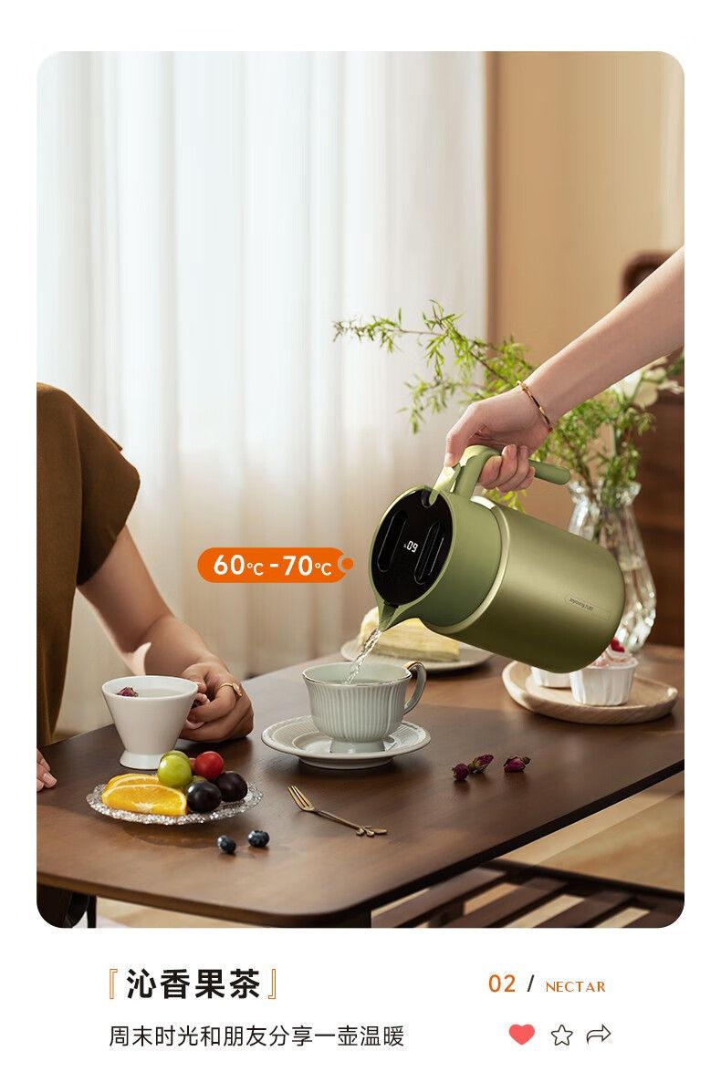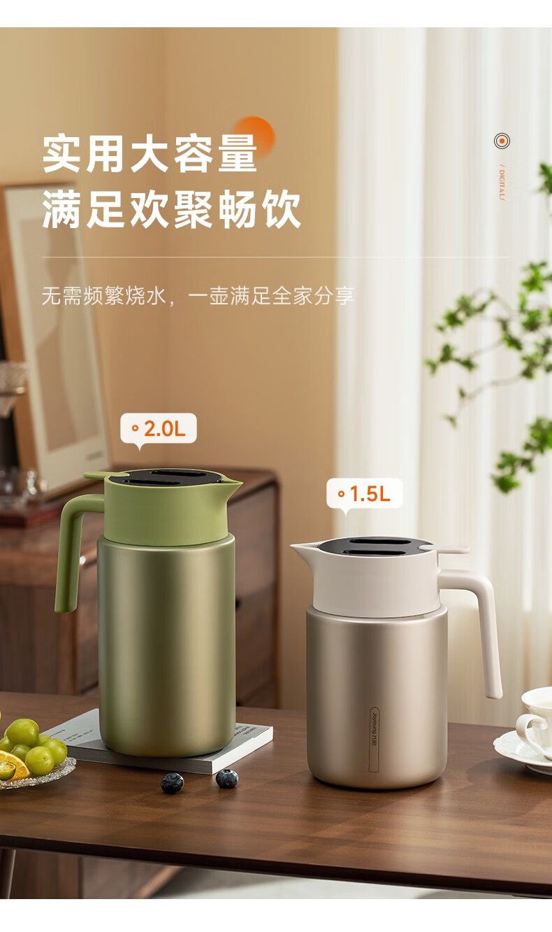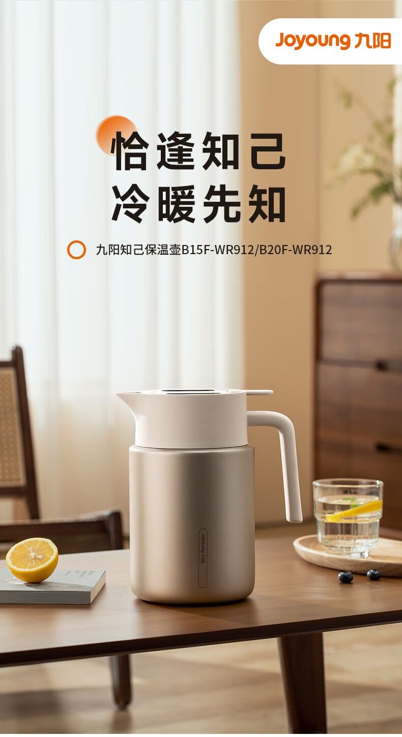 九阳 家用2L大容量水壶316L不锈钢真空保温瓶智能显温 B20F-WR912(白)