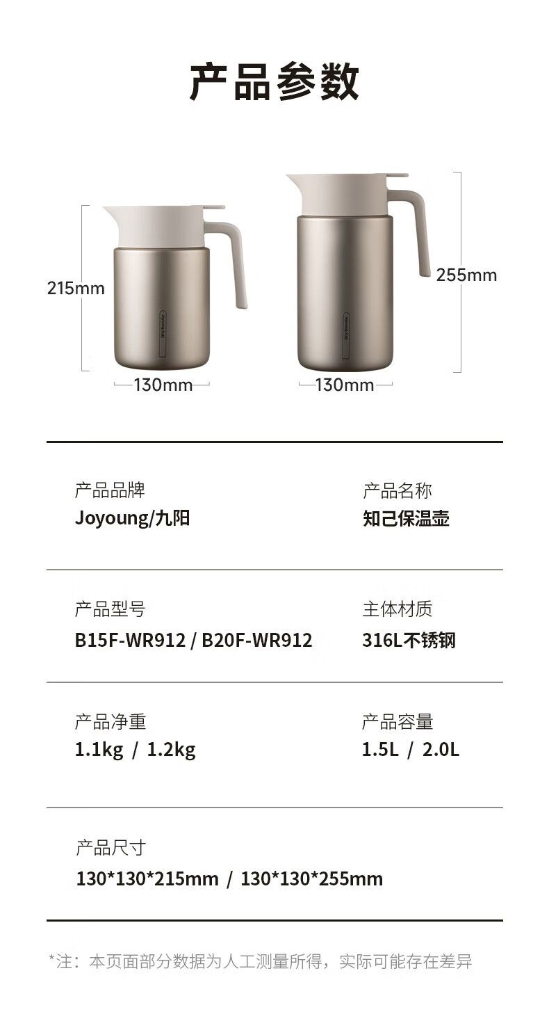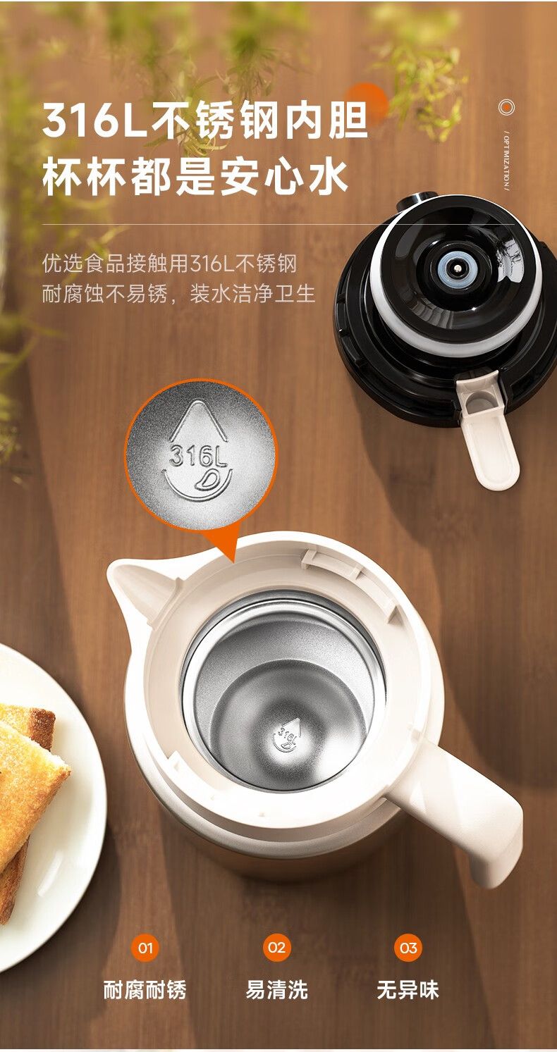 商品名称:九阳 家用2L大容量水壶316L不锈钢真空保温瓶智能显温 B20F-WR912(白)