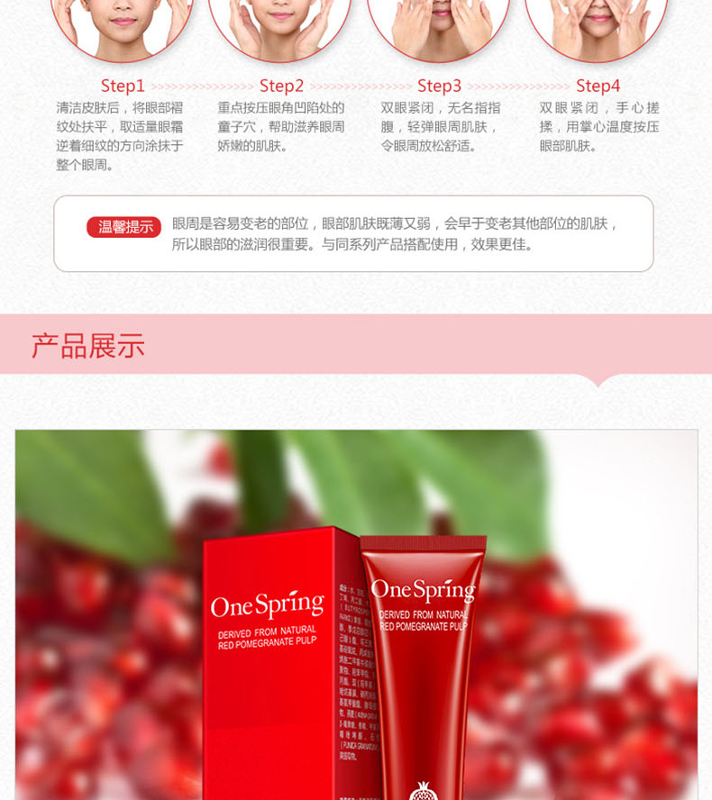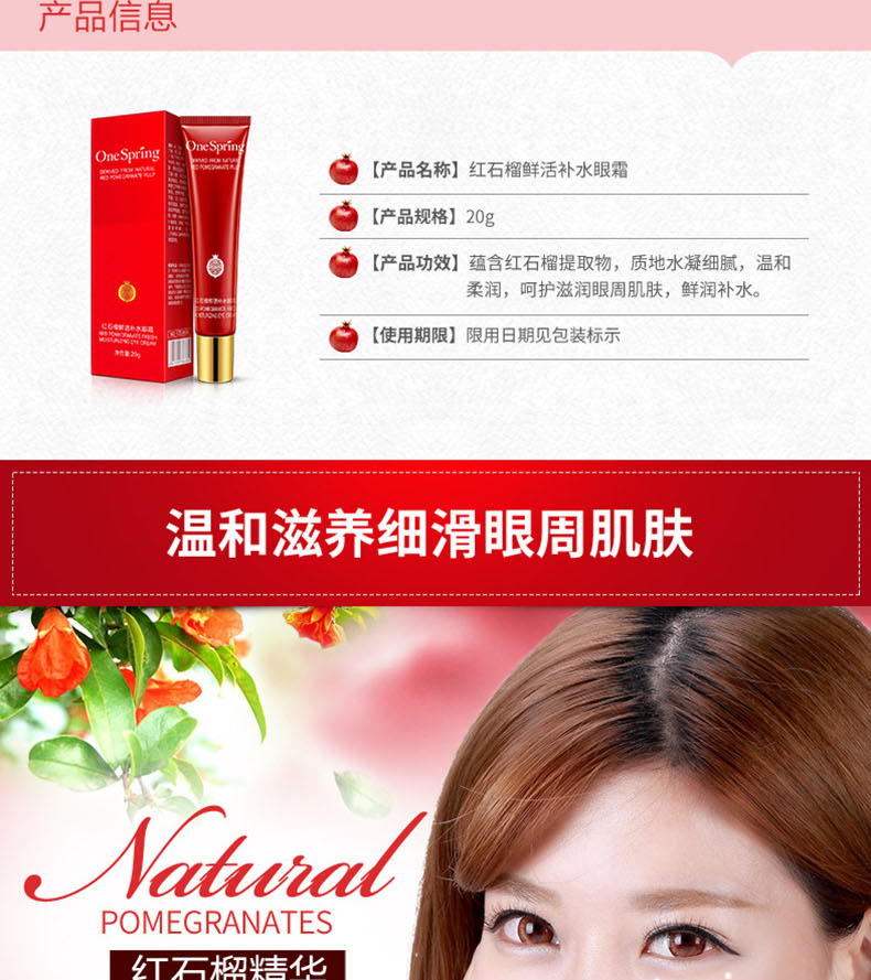 商品名称: 一枝春 红石榴鲜活补水眼霜 保湿水润 眼部护理 20g