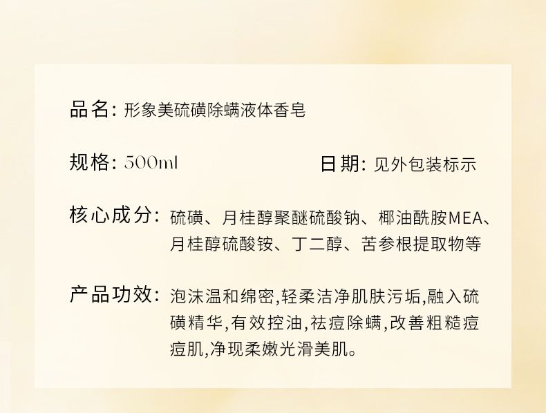 商品名称:images/形象美 硫磺除螨液体香皂 500ml