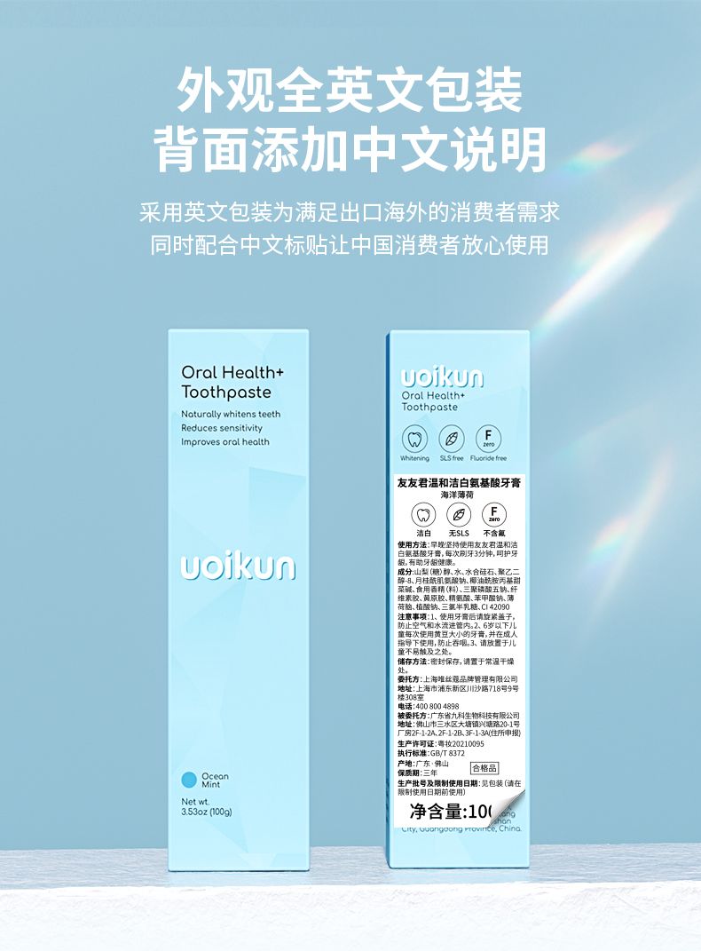 商品名称:uoikun/友友君 温和洁白氨基酸牙膏(海洋薄荷)