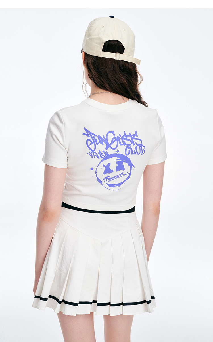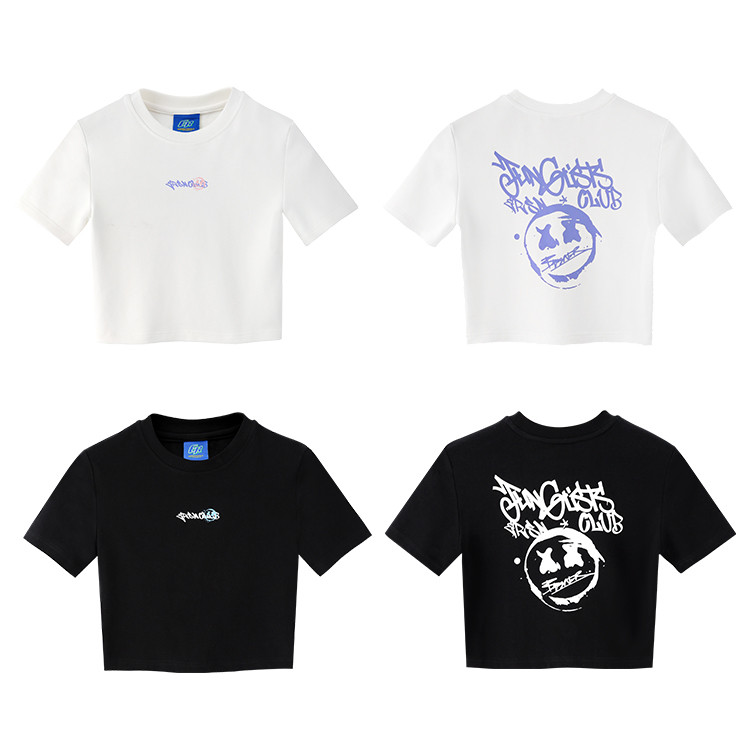 鬼脸涂鸦短袖女夏季辣妹装露肚脐上衣美式潮牌体恤 488279