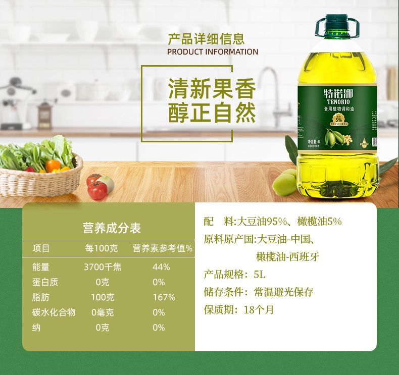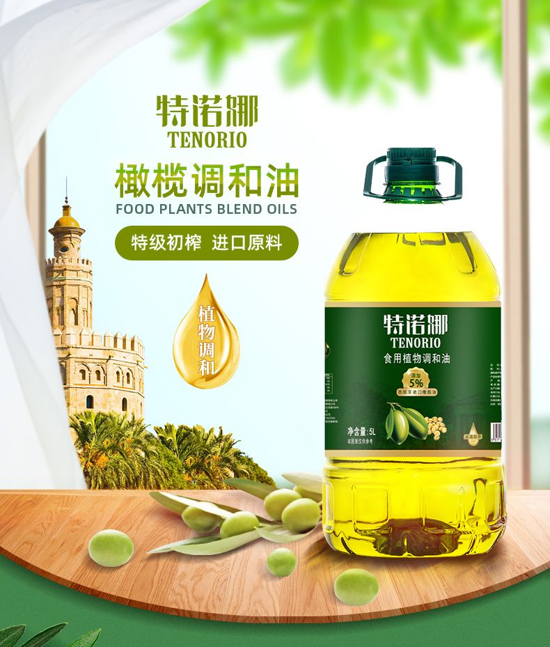 商品名称:特诺娜食用植物调和油 添加特级初榨橄榄油 多规格5L装/桶 4L/桶 420ML/瓶