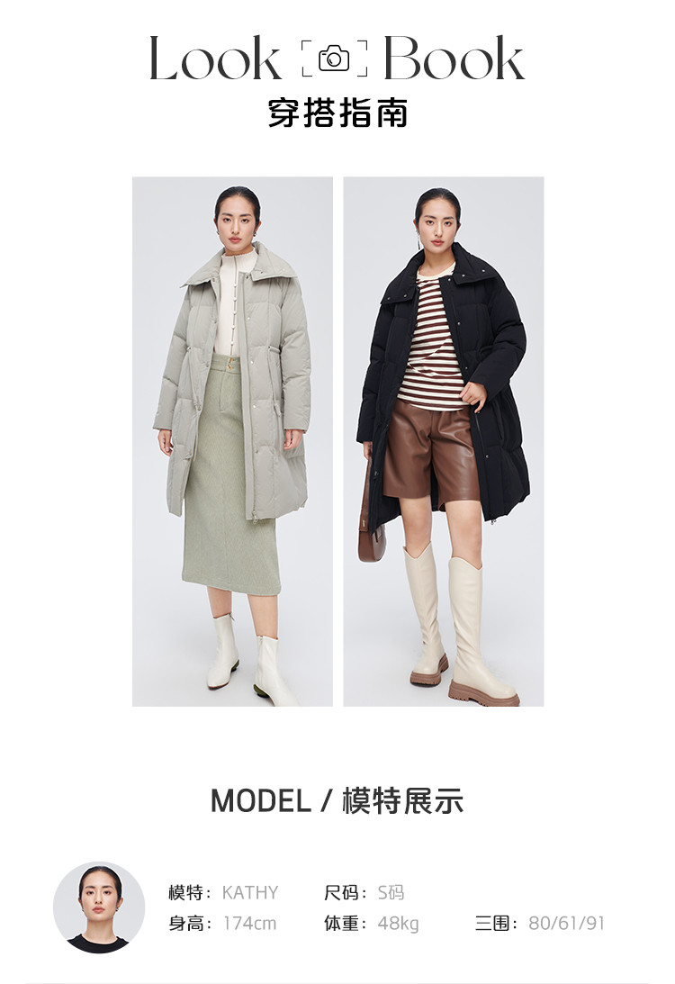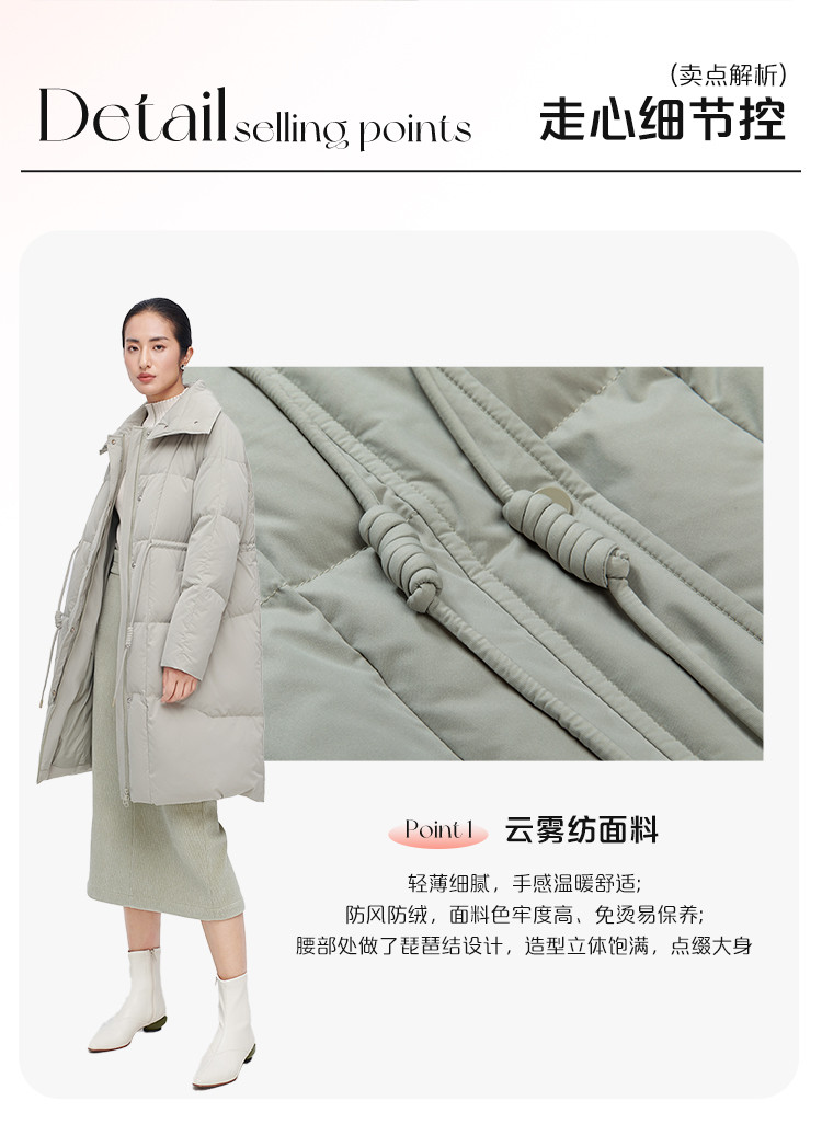 商品名称:【商场同款】气质琵琶结收腰翻领羽绒服女中长款秋冬加厚鸭绒服 361110