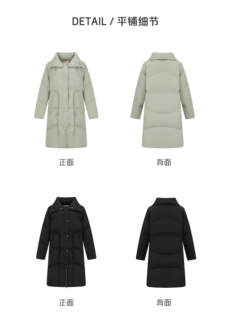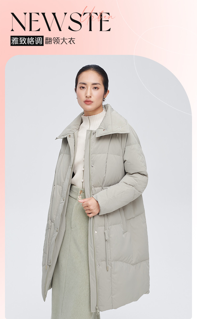 【商场同款】气质琵琶结收腰翻领羽绒服女中长款秋冬加厚鸭绒服 361110