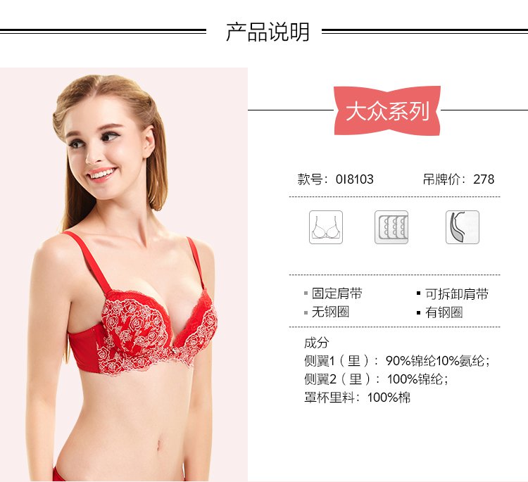 商品名称:【捡漏款】透气蕾丝性感时尚收副乳聚拢型美背内衣女文胸罩 918923