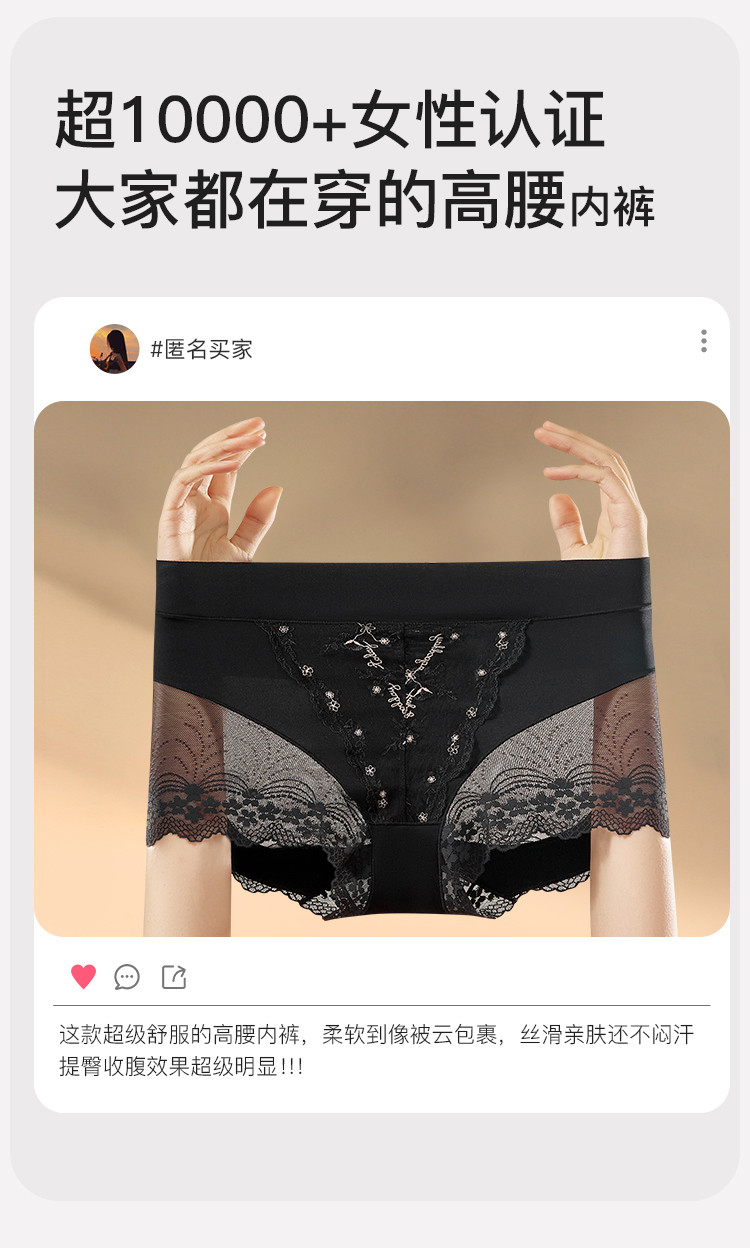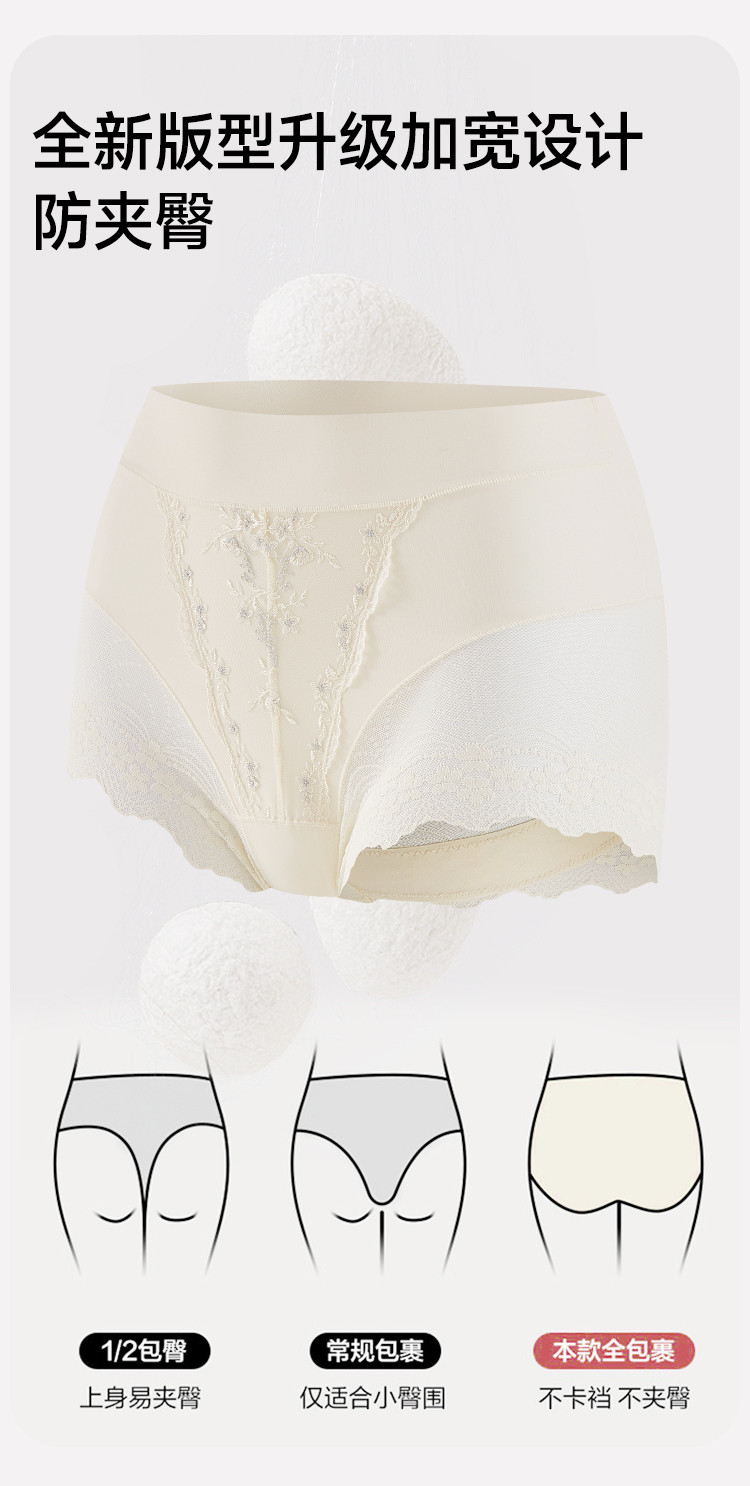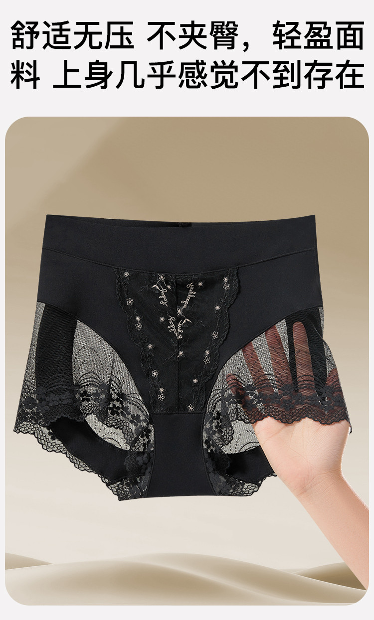 商品名称:【含桑蚕丝莫代尔裆】性感蕾丝高腰收腹提臀高开叉女士内裤女短裤 620363