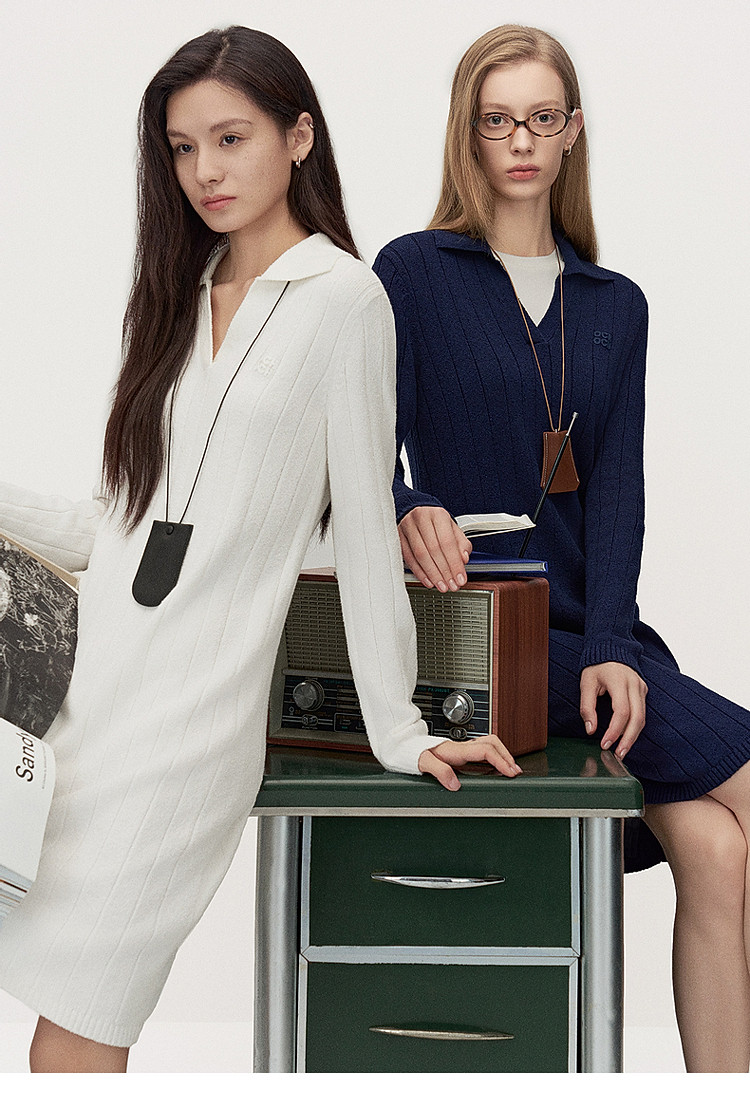 商品名称:春装 中长款美拉蓝气质Polo领针织连衣裙 475855
