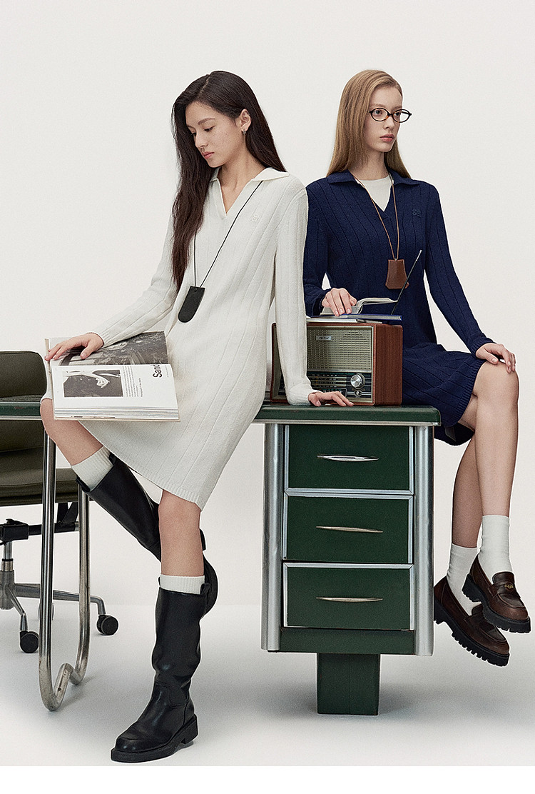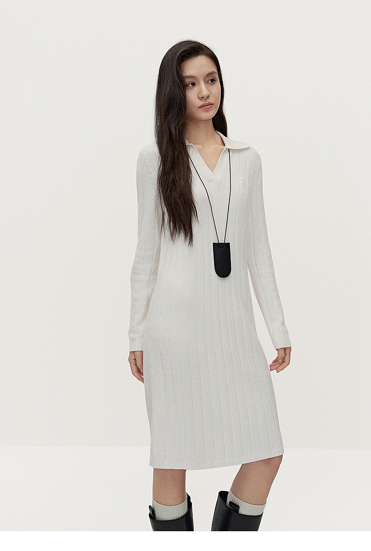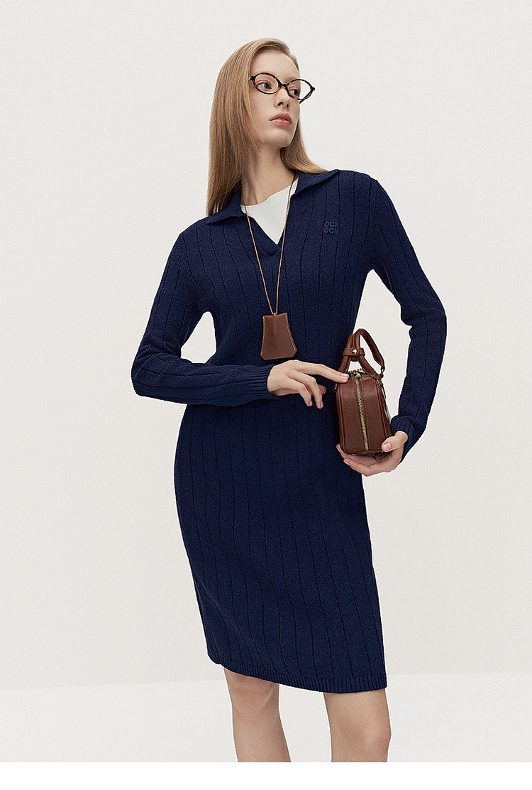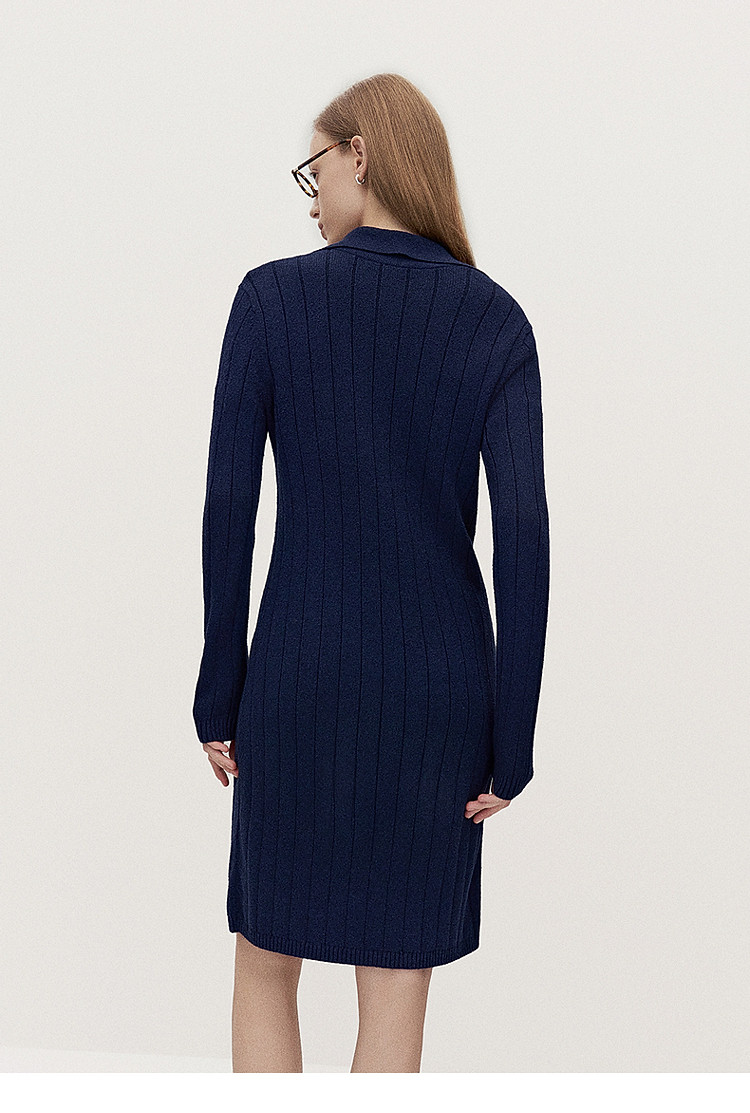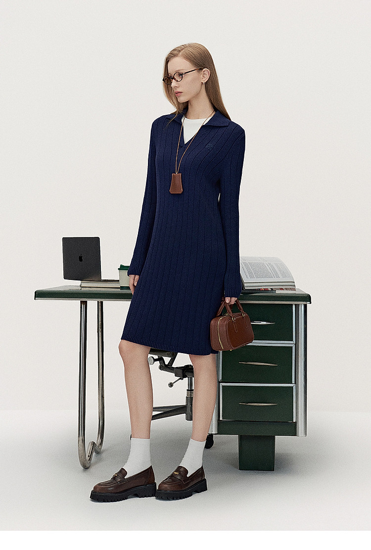 春装 中长款美拉蓝气质Polo领针织连衣裙 475855