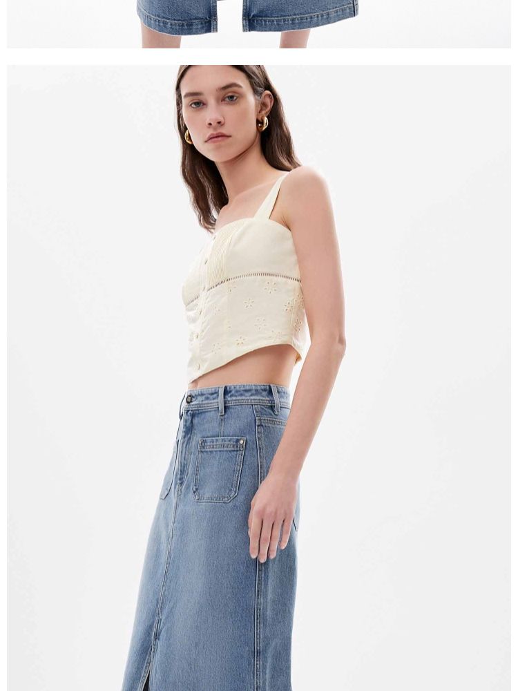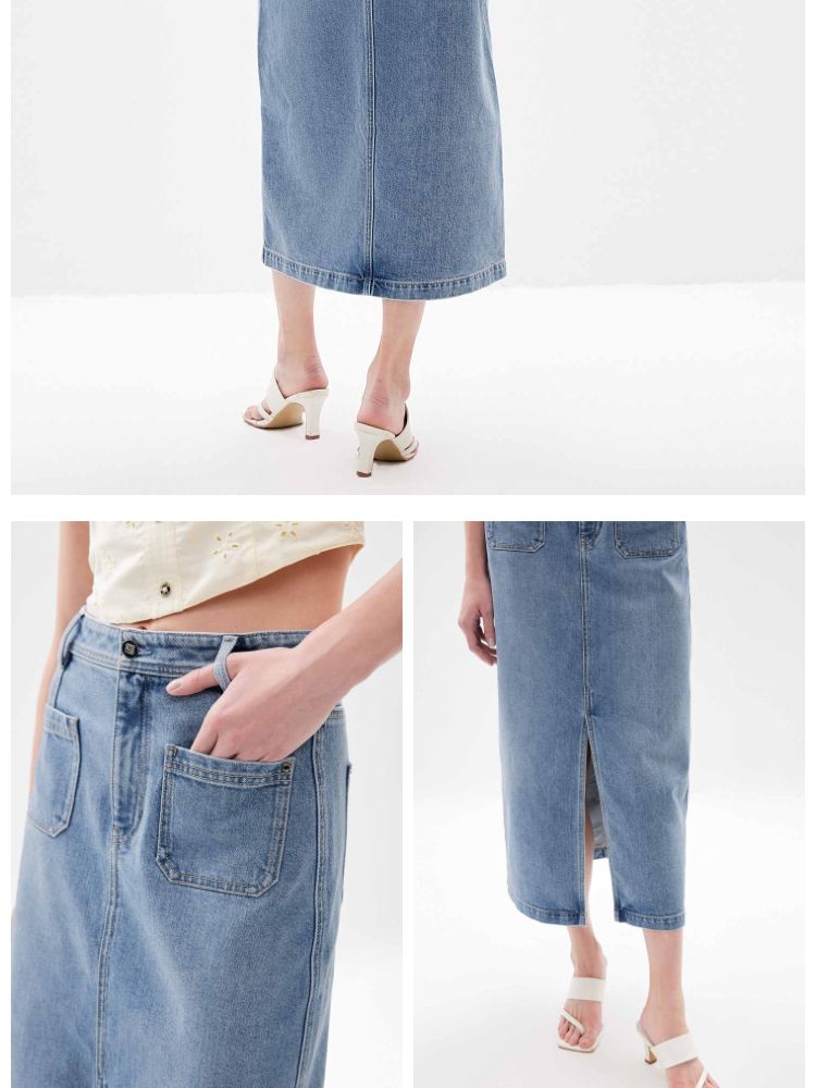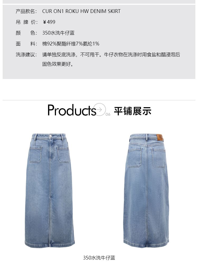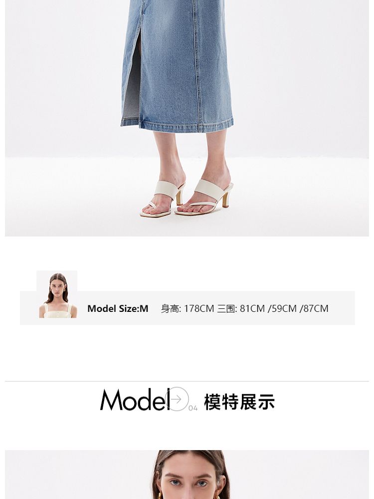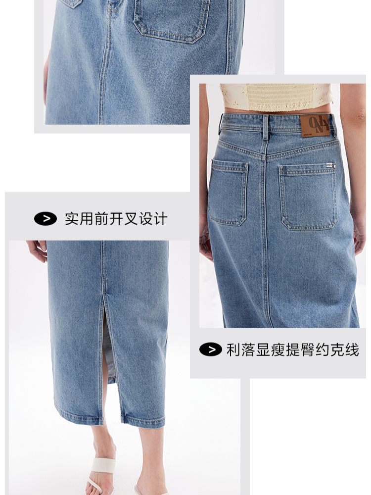 商品名称:【时尚高腰】夏季开叉牛仔长款直筒半身裙女 006746