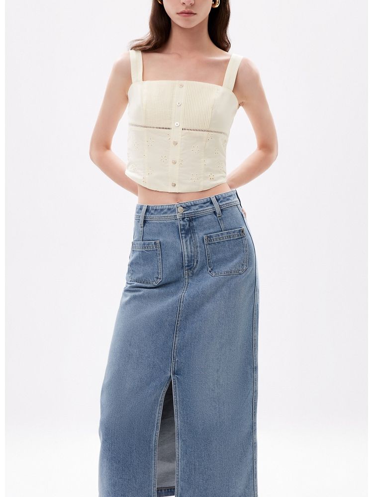【时尚高腰】夏季开叉牛仔长款直筒半身裙女 006746