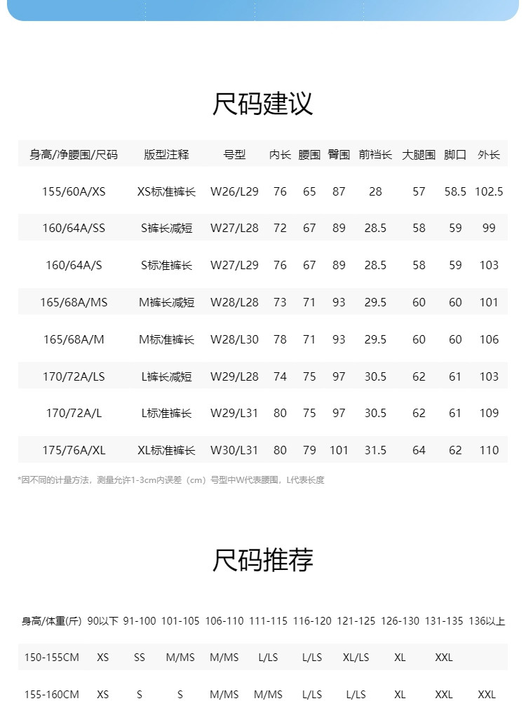 XS(标准裤长)