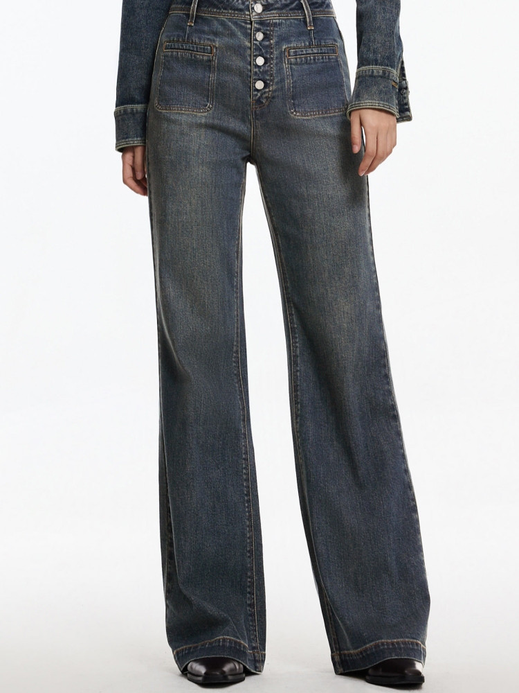 限定系列OCH.春装 香蕉裤复古休闲高街四面弹牛仔长裤女 393935