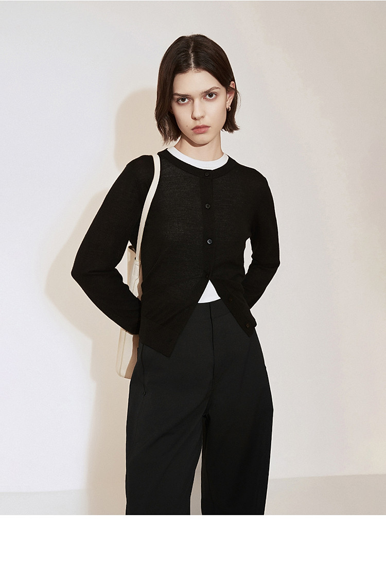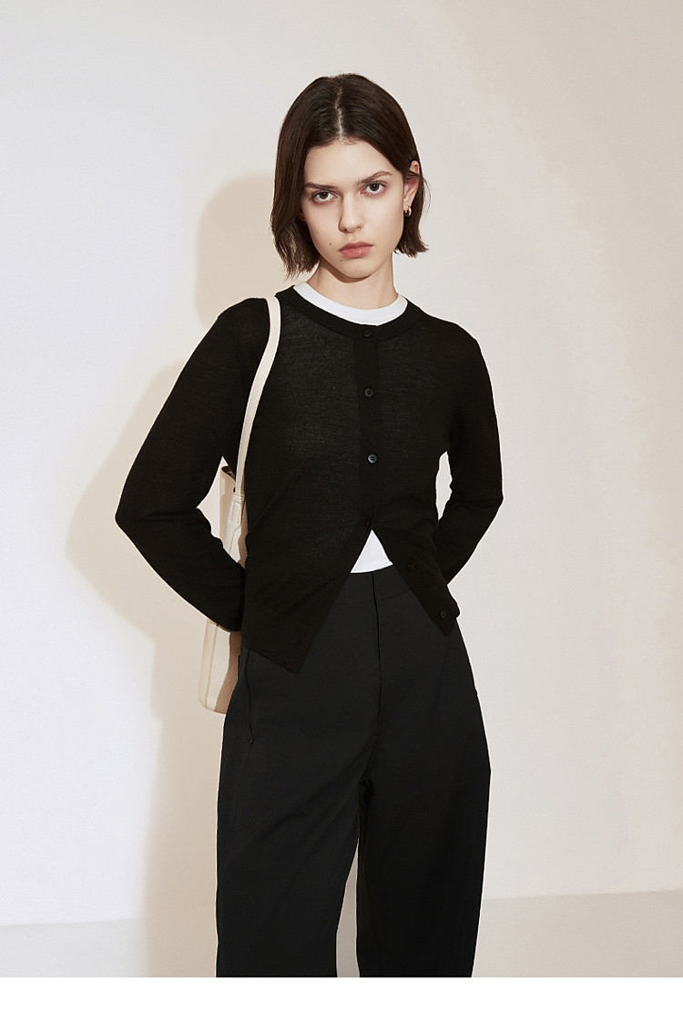 春装 气质软糯开衫桑蚕丝羊毛针织外套女 334607