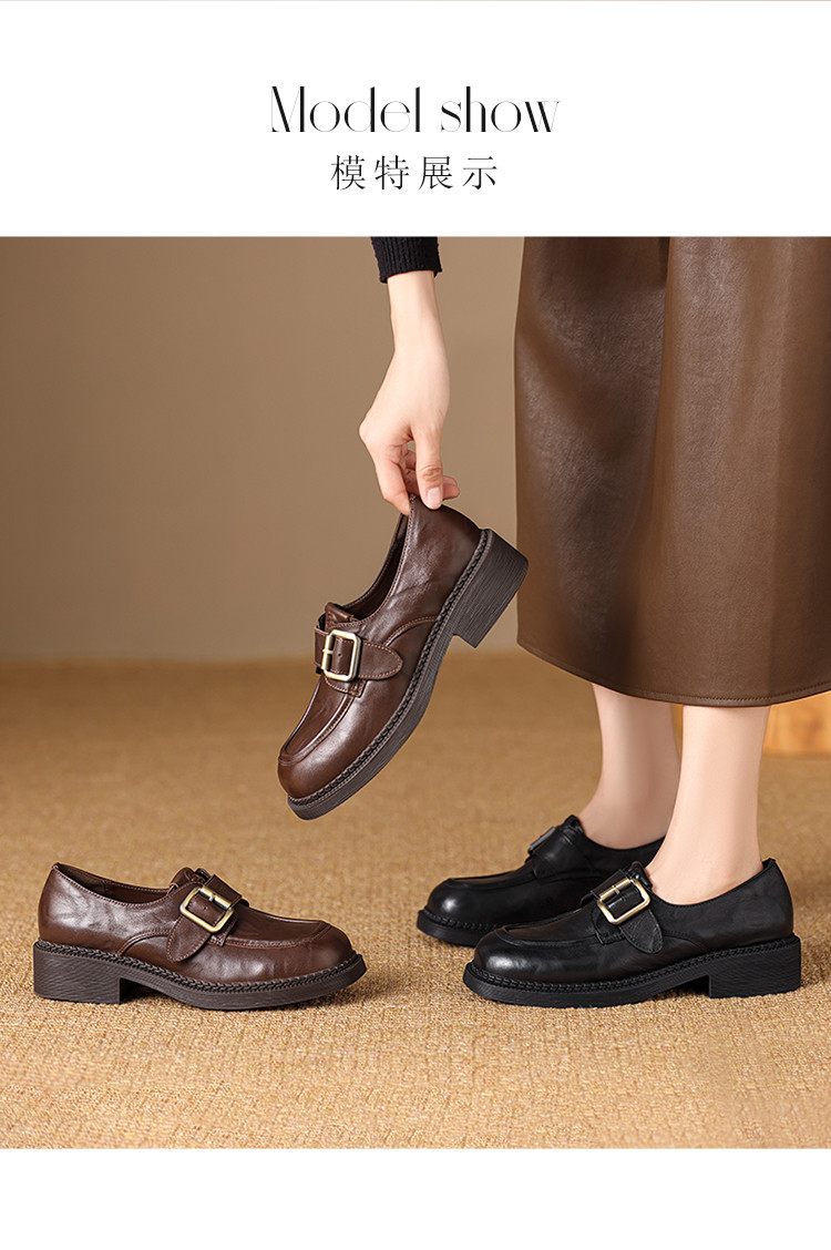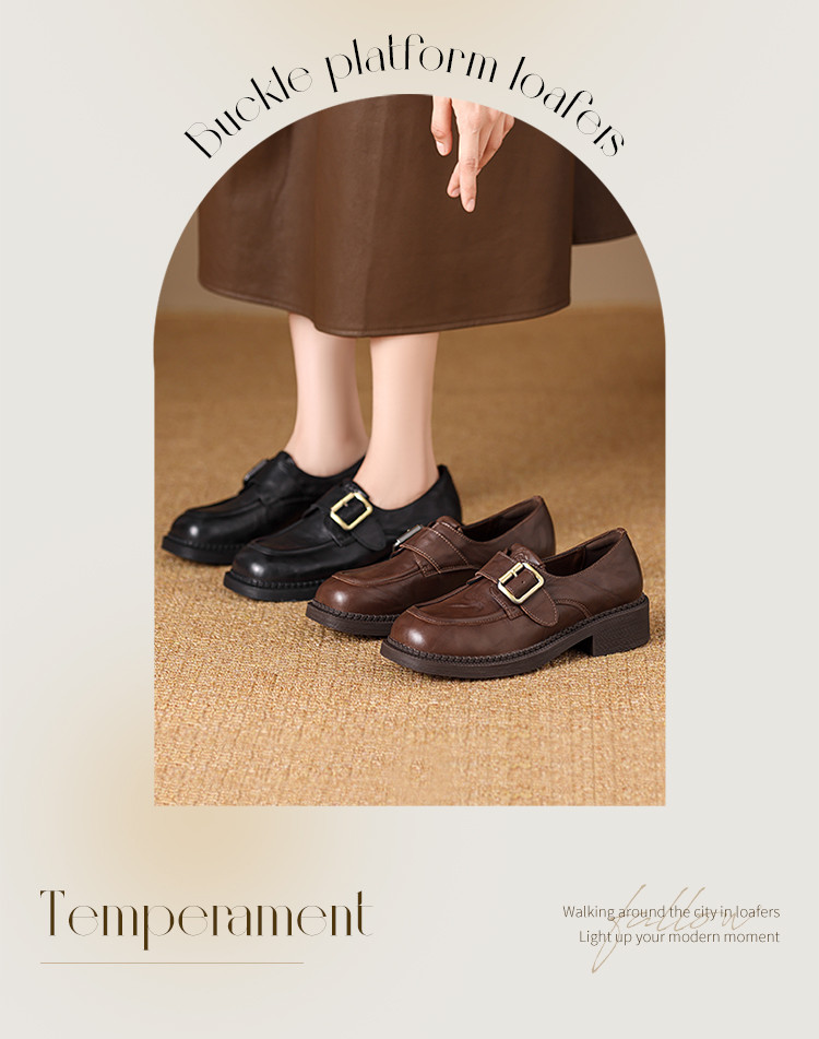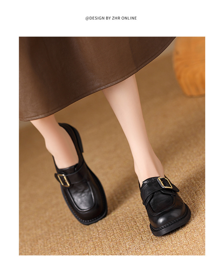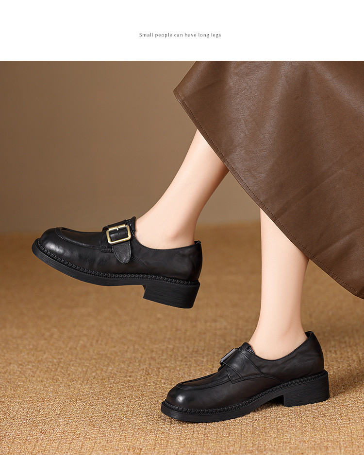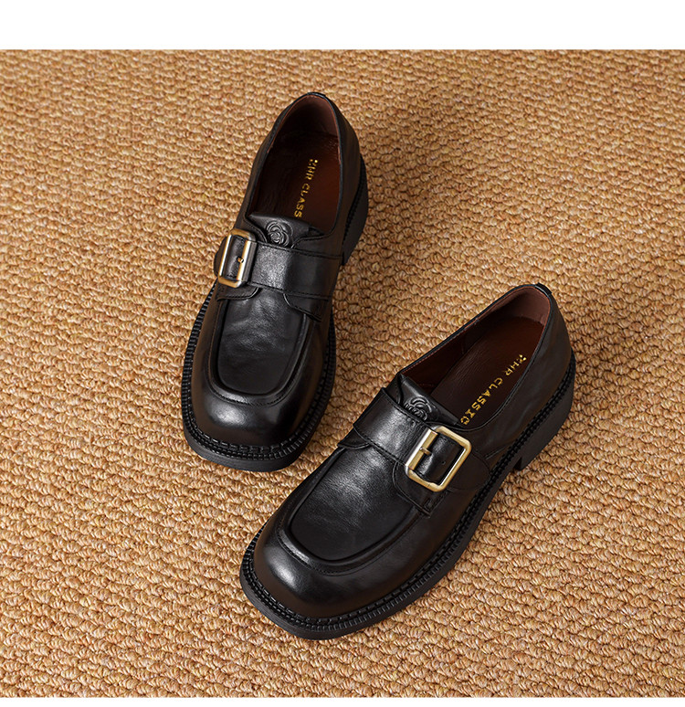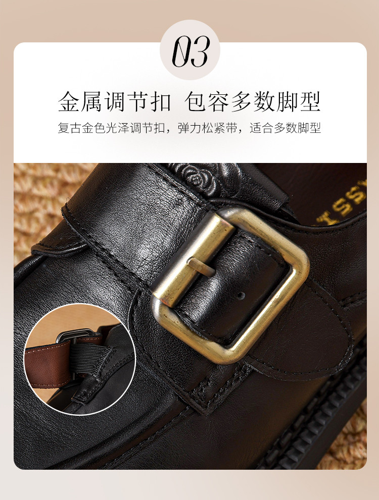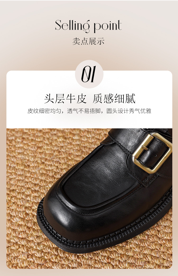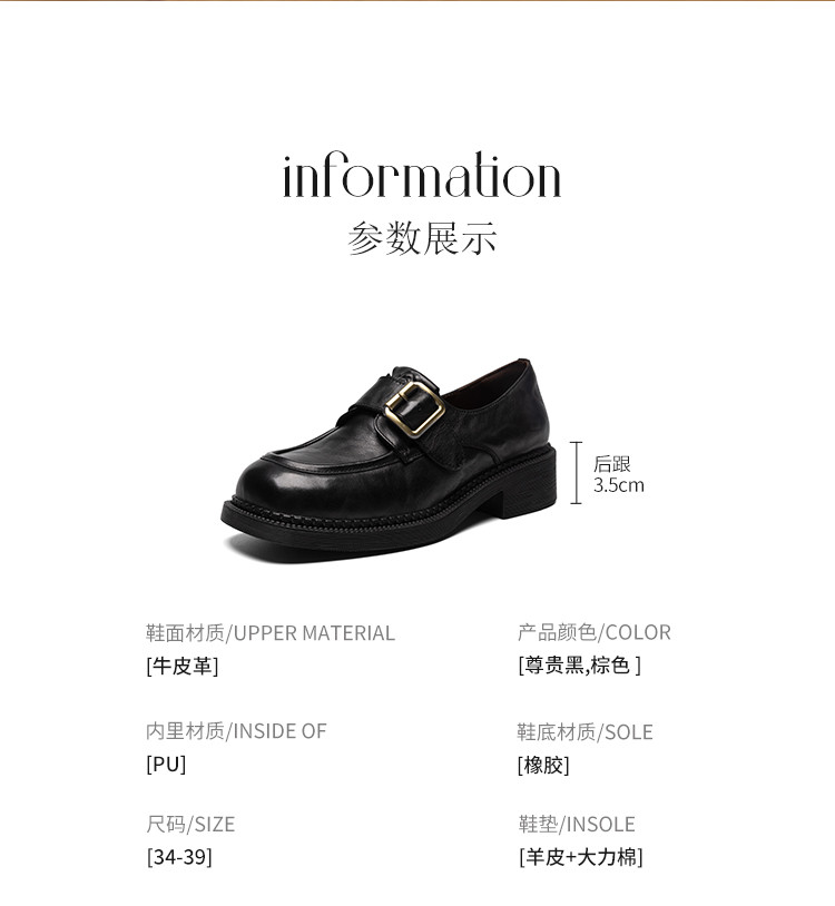 商品名称:【头层牛皮】金属搭扣增高小皮鞋2025春季厚底乐福鞋女单鞋 393344