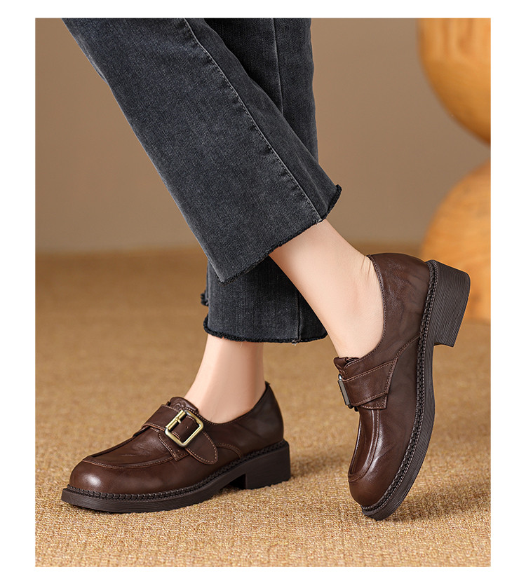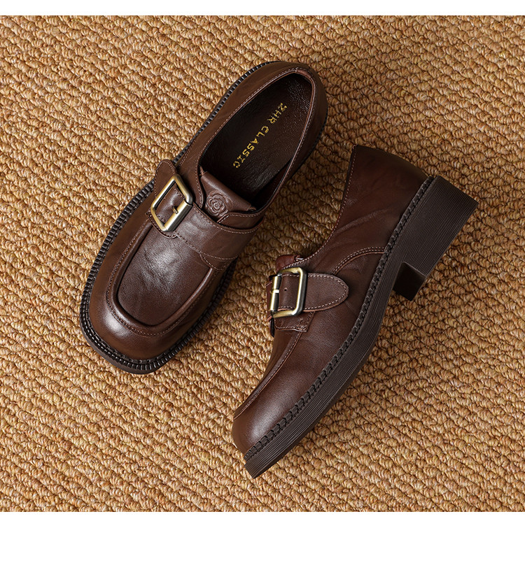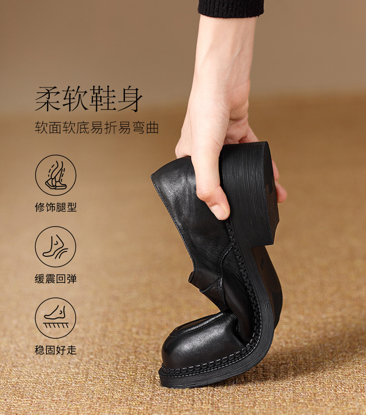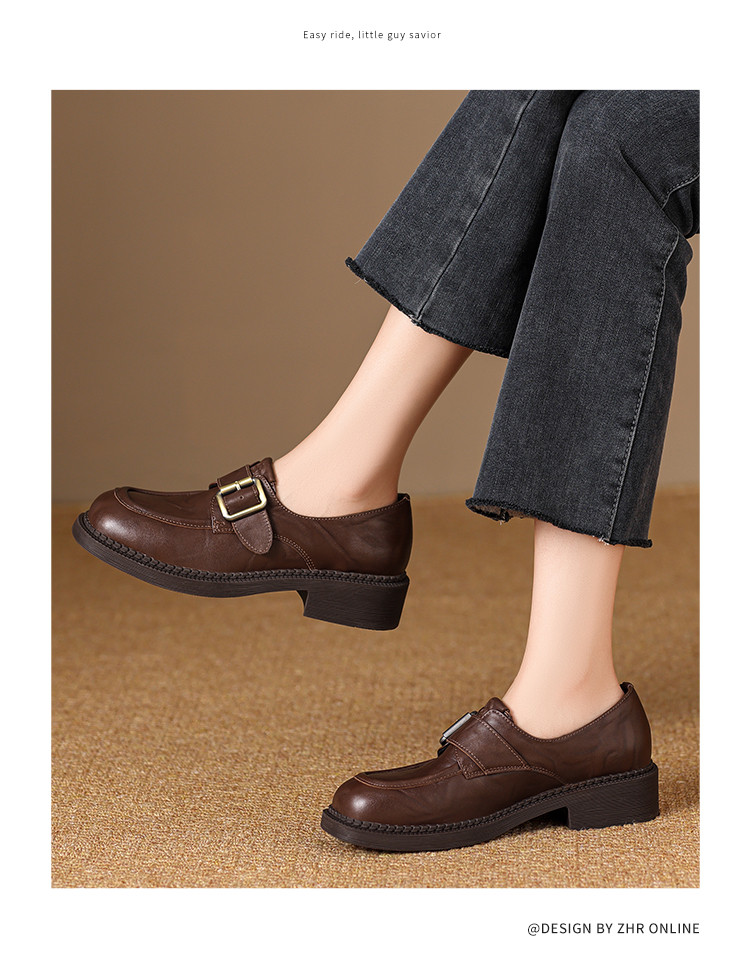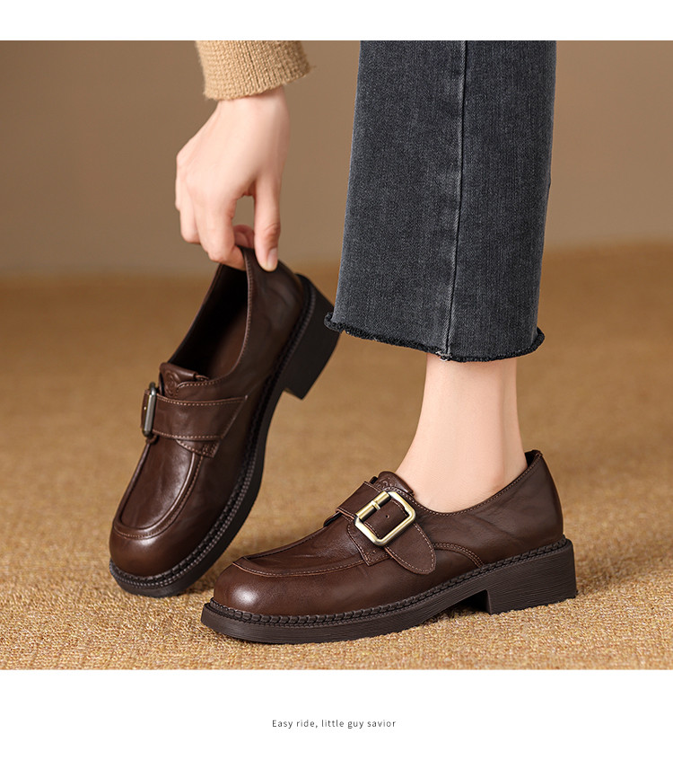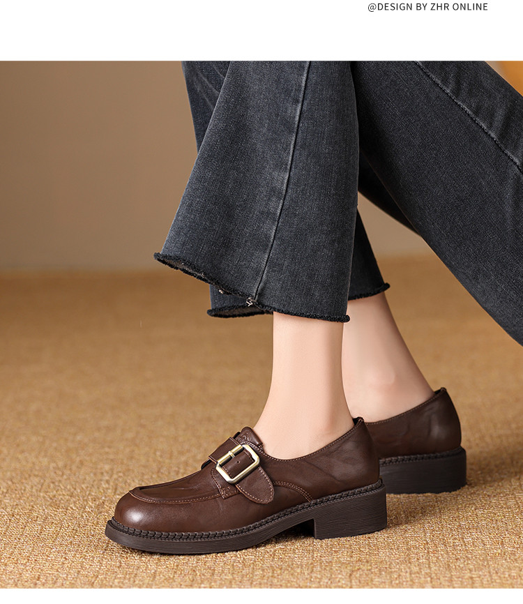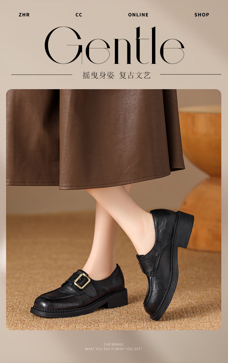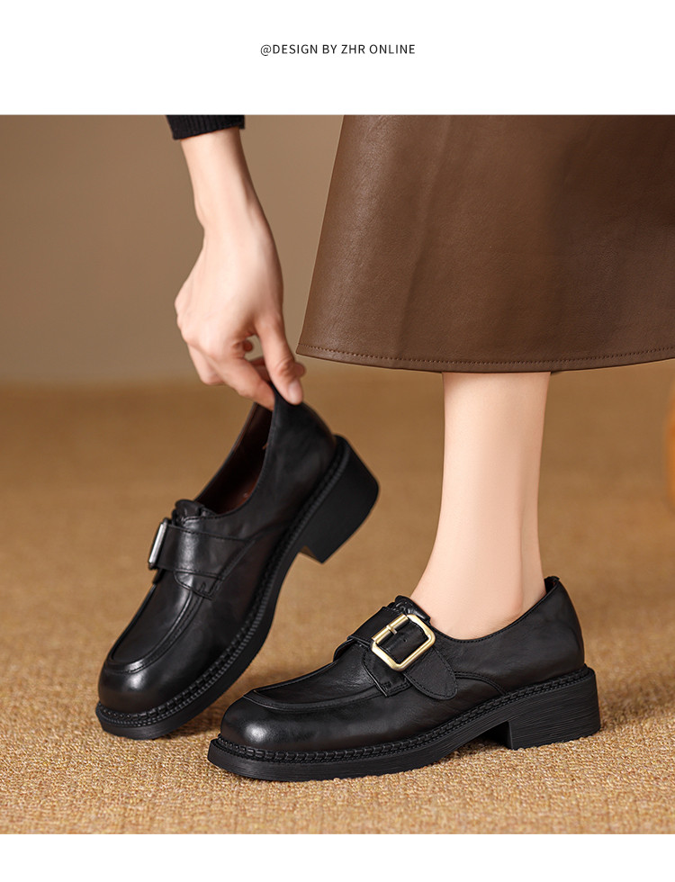 商品名称:【头层牛皮】金属搭扣增高小皮鞋2025春季厚底乐福鞋女单鞋 393344