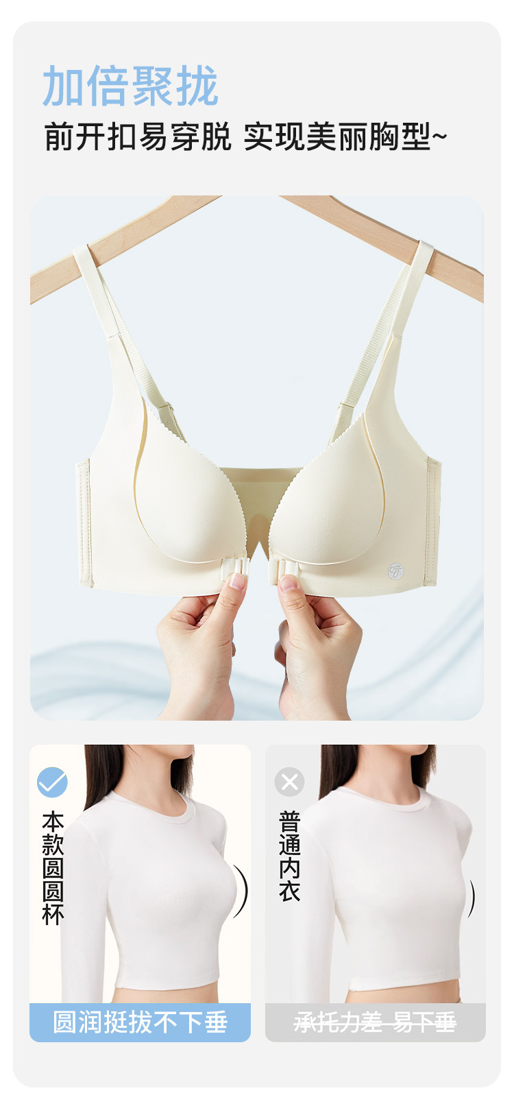 商品名称:【前扣聚拢】内衣小胸聚拢不空杯调整型无痕性感美背无钢圈文胸罩 890699