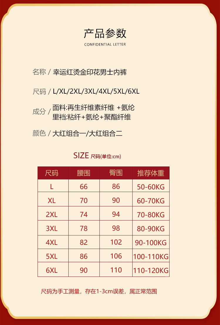 商品名称:【240斤可穿加肥加大】男士内裤大红色平角裤喜庆透气四角裤头 175198