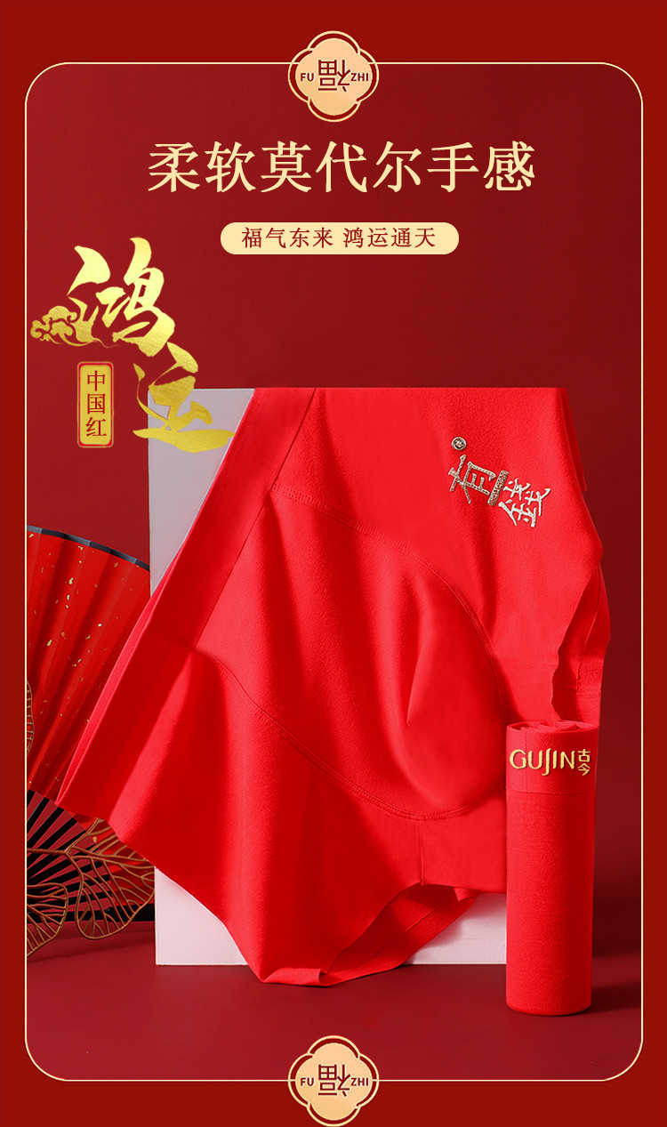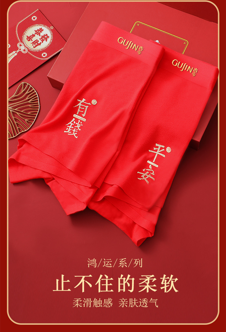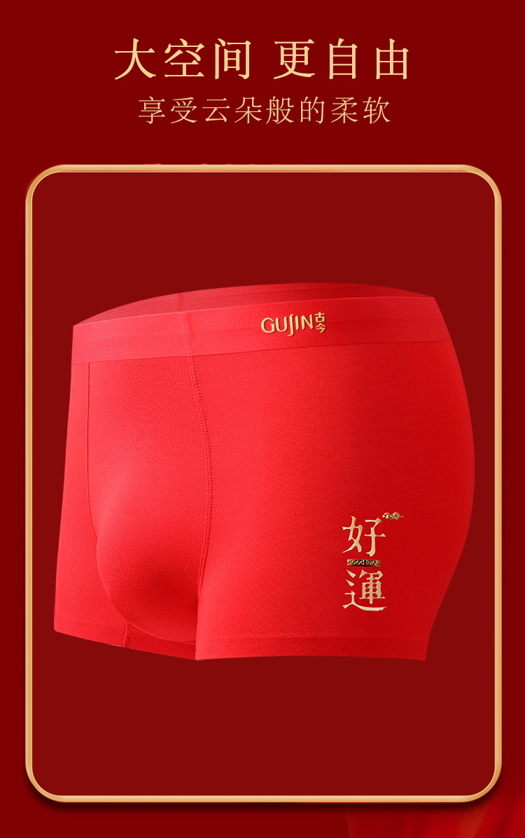 【240斤可穿加肥加大】男士内裤大红色平角裤喜庆透气四角裤头 175198