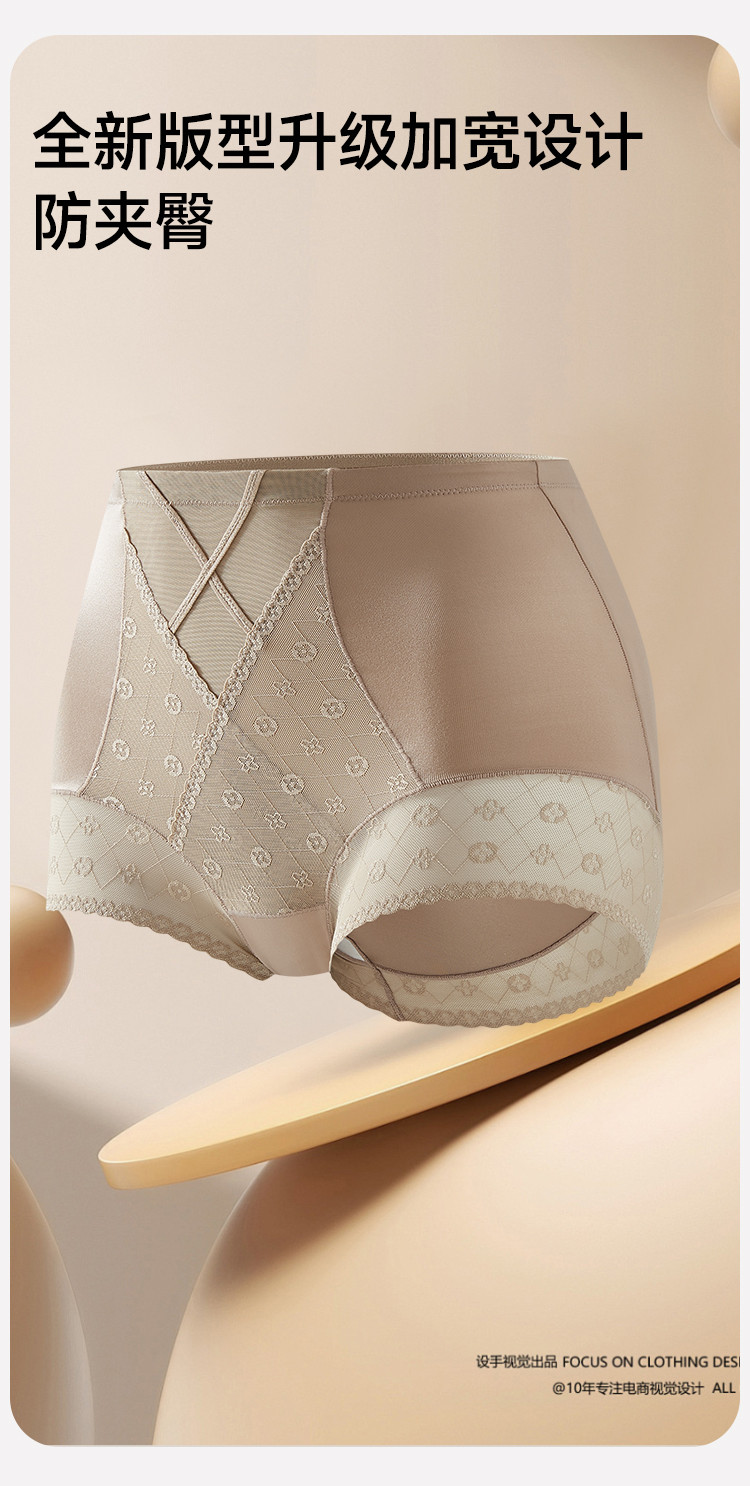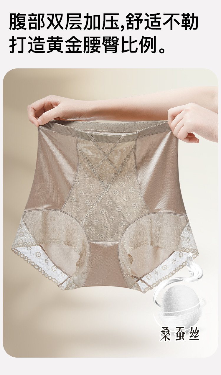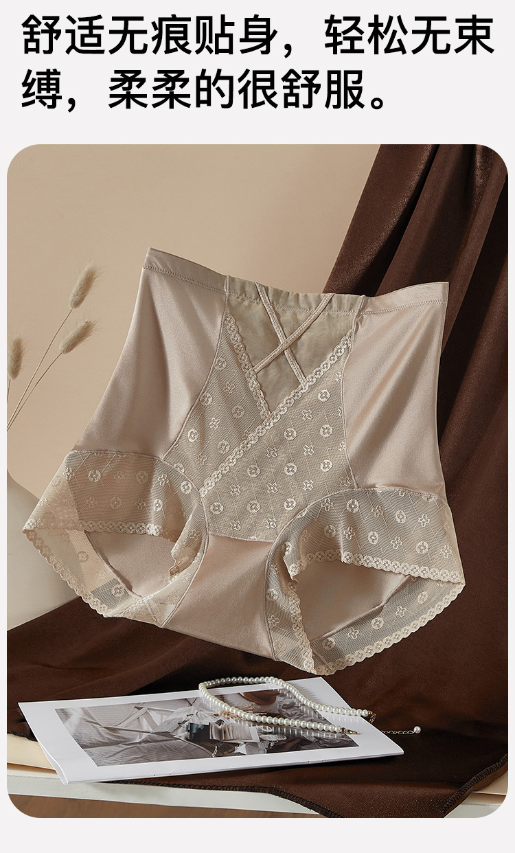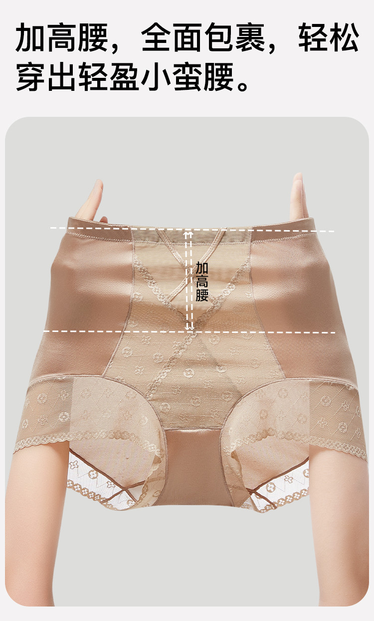 商品名称:【含桑蚕丝抑菌裆】高级性感蕾丝提臀收腹高腰透气女士内裤女短裤 732043
