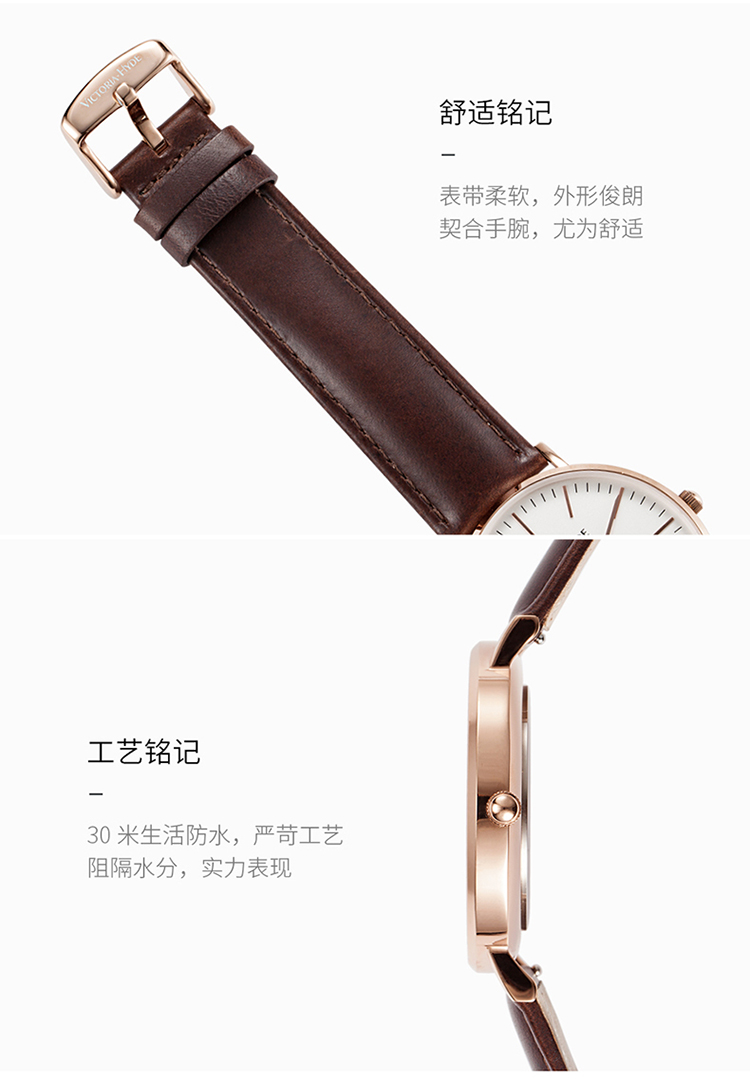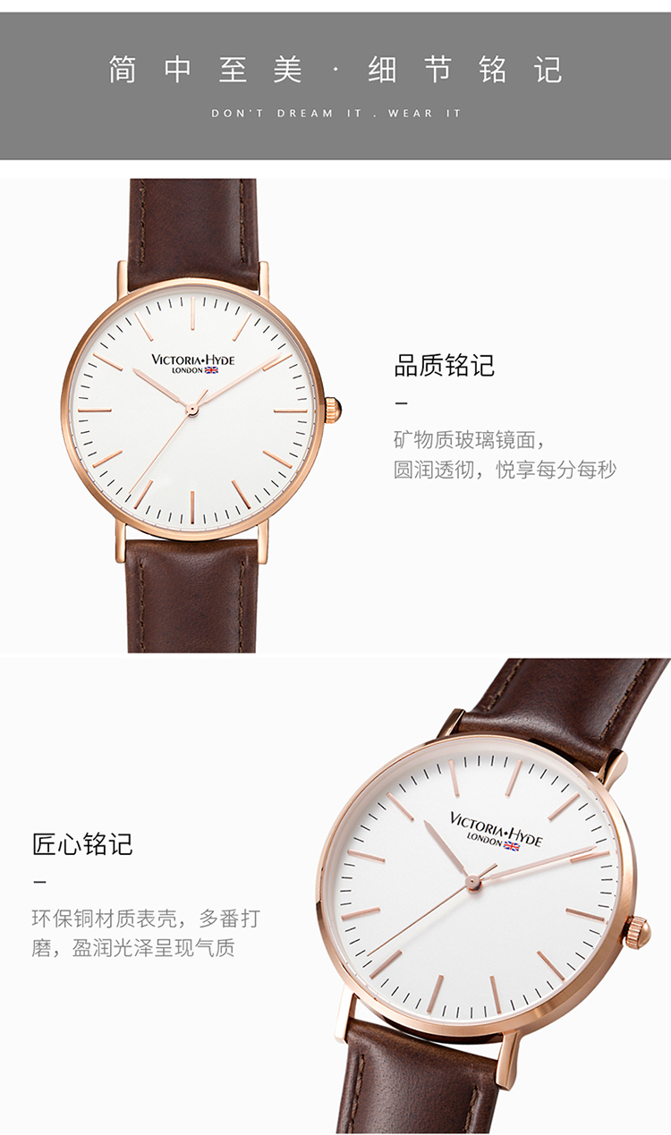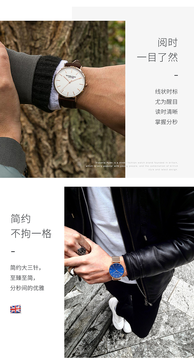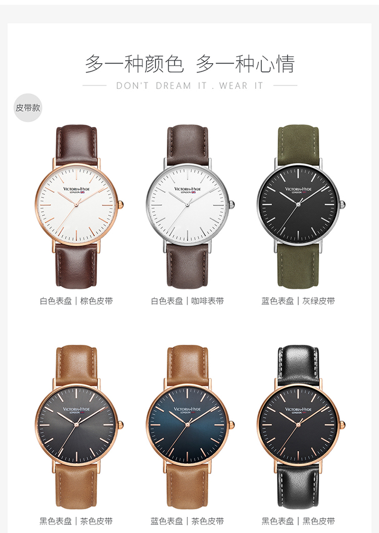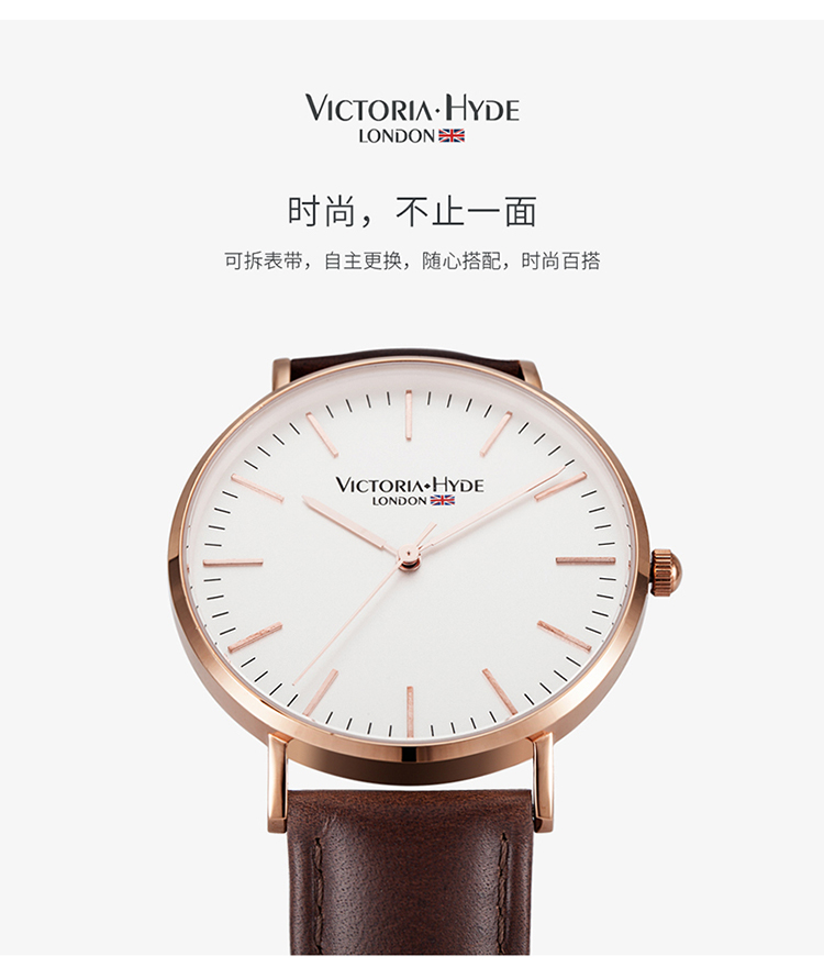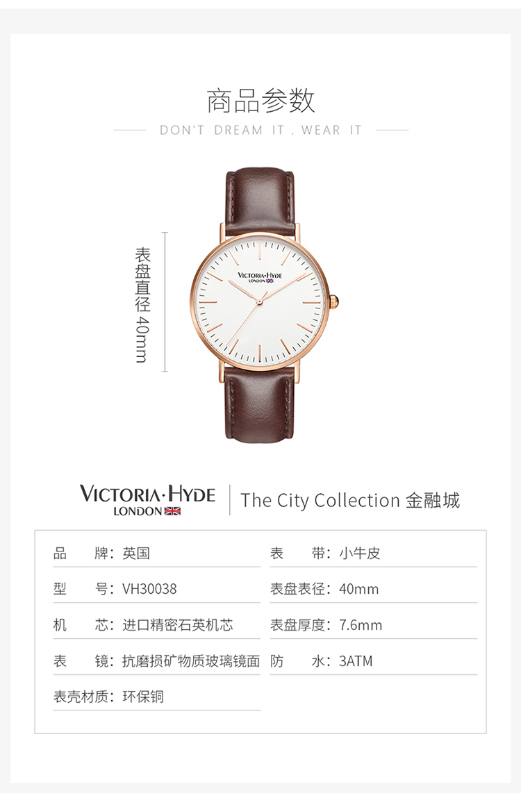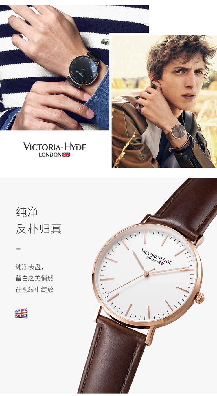 商品名称:Victoria.Hyde/维多利亚海德 简约男士石英腕表 时尚商务防水真皮带手表40mm