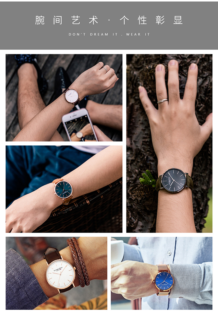 Victoria.Hyde/维多利亚海德 简约男士石英腕表 时尚商务防水真皮带手表40mm