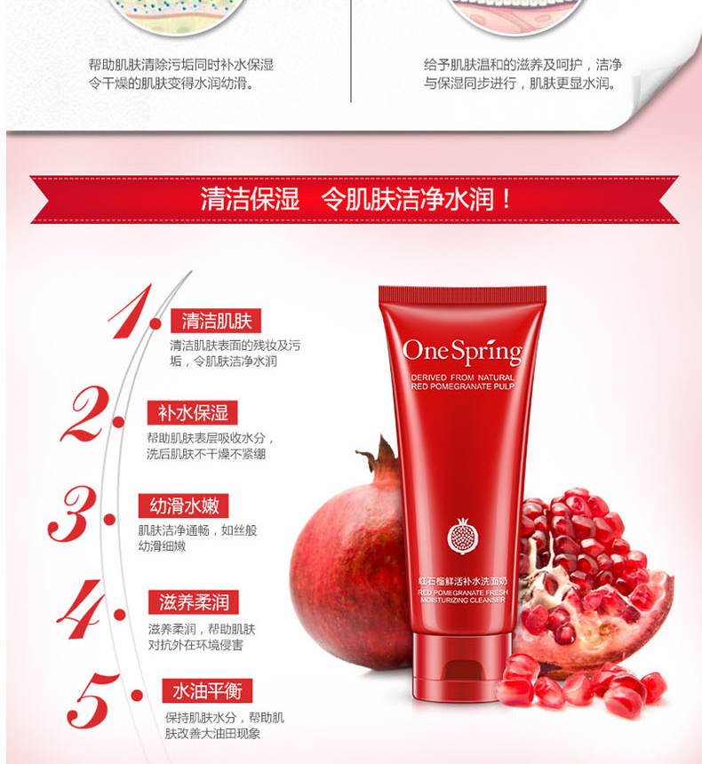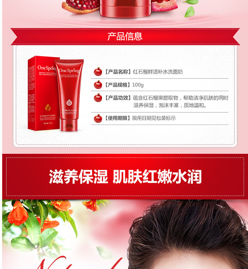 商品名称:一枝春 红石榴鲜活补水洗面奶 温和清洁水润保湿 100g