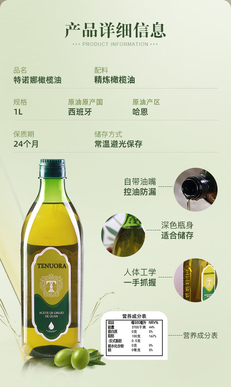 商品名称:特诺娜橄榄油1L装/瓶(西班牙原油进口)