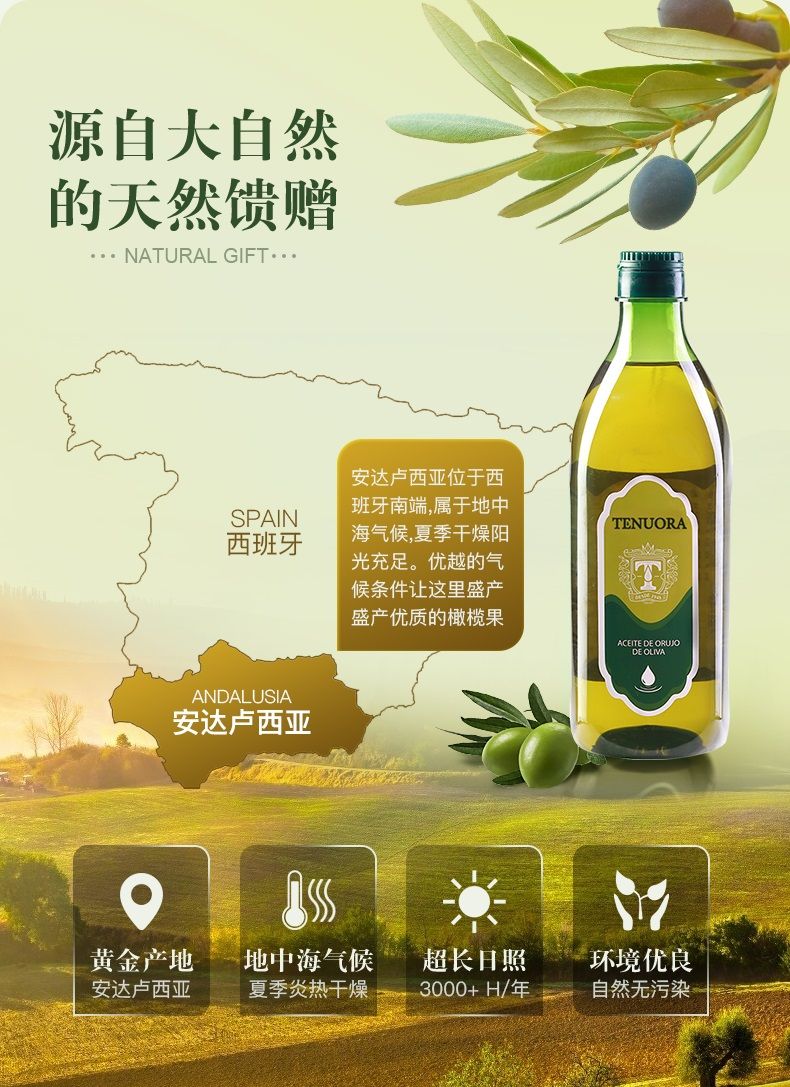 特诺娜橄榄油1L装/瓶(西班牙原油进口)