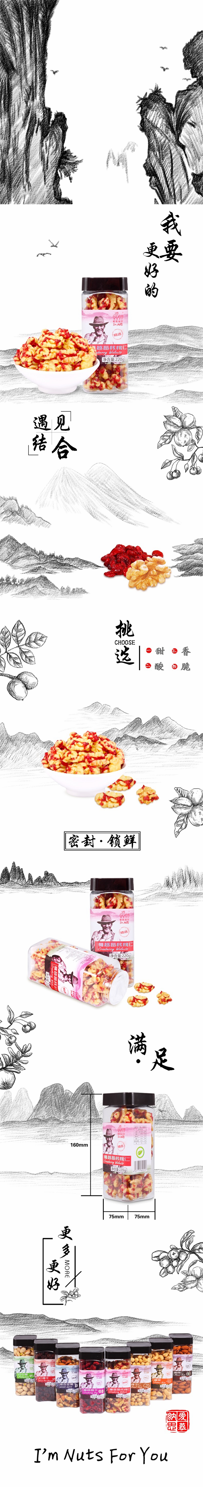 商品名称:爱慕纳思 罐装蔓越莓核桃220克