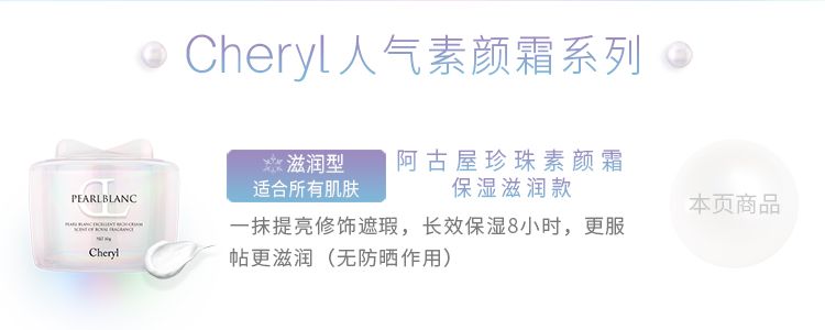 商品名称:Cheryl/阿古屋 素颜霜樱花粉色珍珠素颜霜 懒人裸妆感 50g