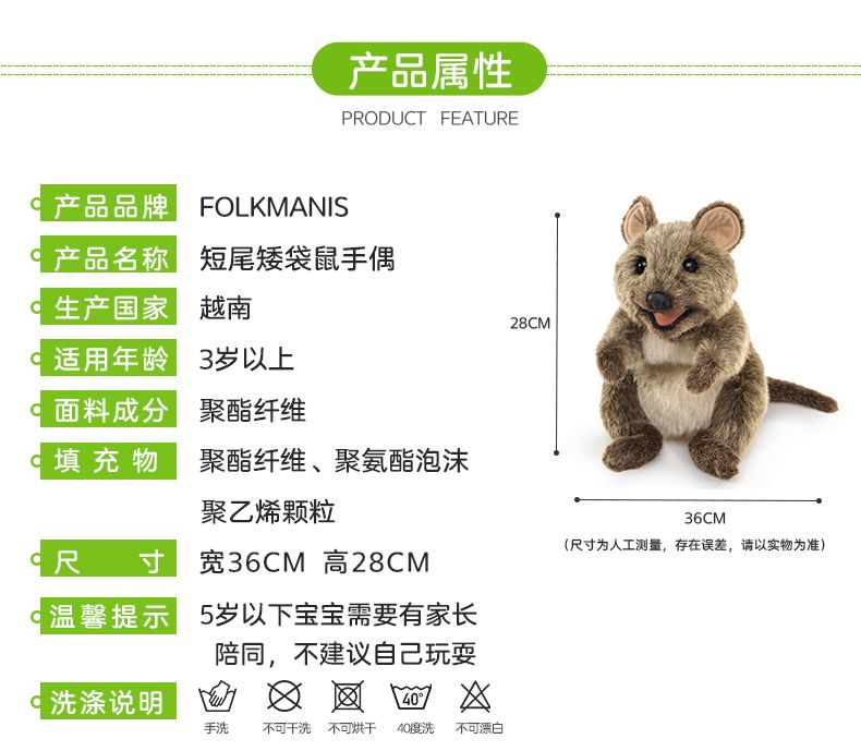 商品名称:福克曼尼斯/FOLKMANIS 仿真互动教育手偶短尾矮袋鼠手偶