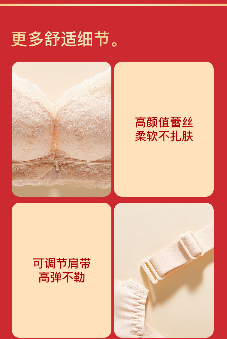 商品名称:【小胸专属】含莫代尔内衣女厚杯不空杯聚拢收副乳无钢圈文胸罩女 889739