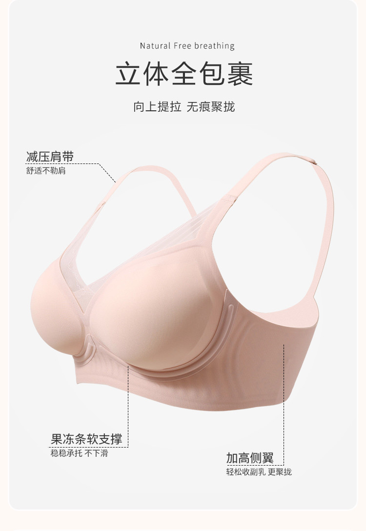 【小胸聚拢显大收副乳】无痕高弹裸感波纹边文胸罩无钢圈内衣女 981214
