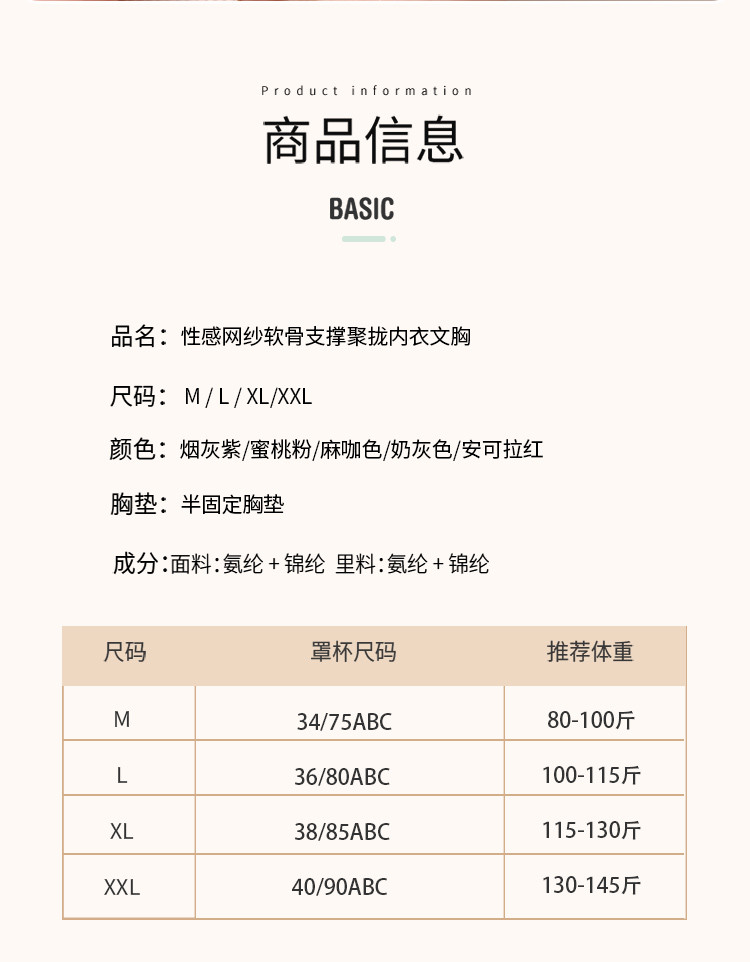 商品名称:【2025新款7A抑菌】细肩带性感网纱软骨支撑聚拢内衣文胸女 576158