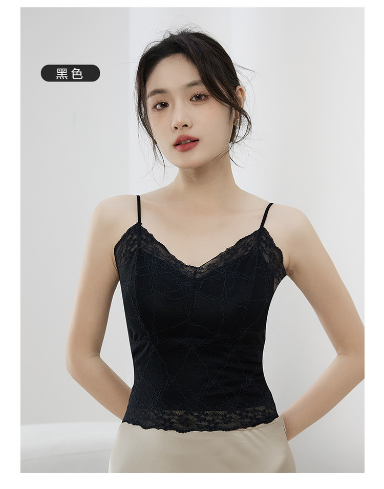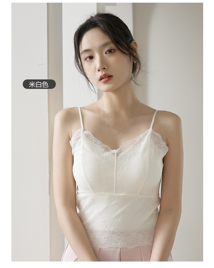 【法式浪漫 性感蕾丝】春夏新款高级感自带胸垫V领打底吊带背心 155294