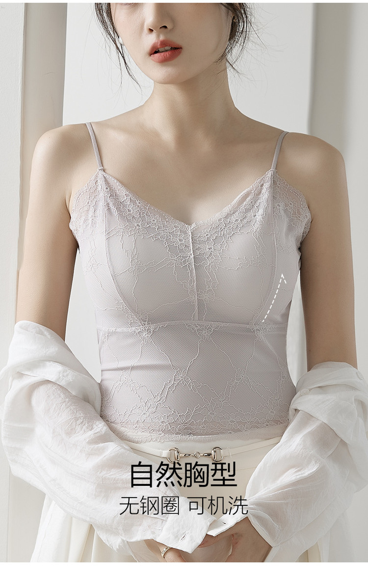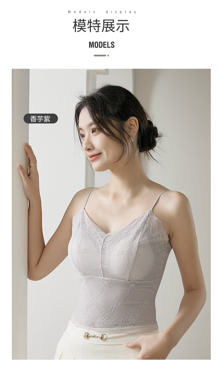 商品名称:【法式浪漫 性感蕾丝】春夏新款高级感自带胸垫V领打底吊带背心 155294
