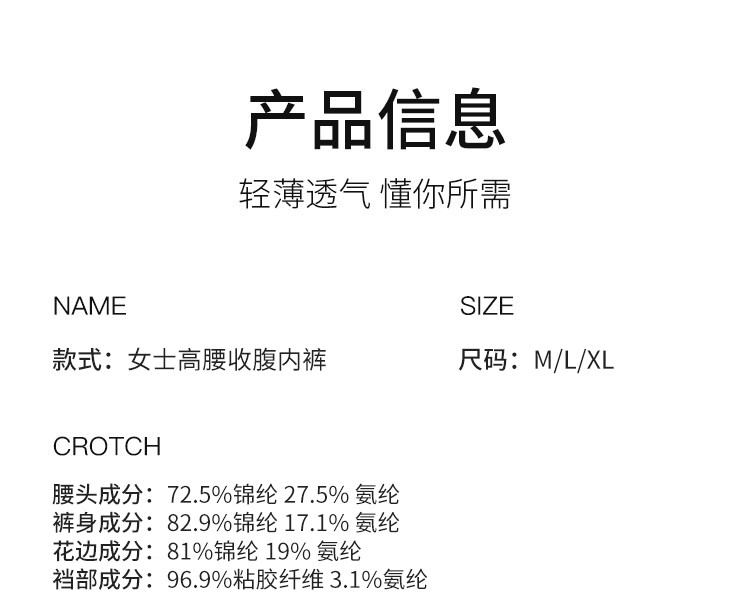 商品名称:【告别小肚腩】收腹提臀蕾丝女高腰遮肉显瘦妈妈装女士内短裤衩女 827531