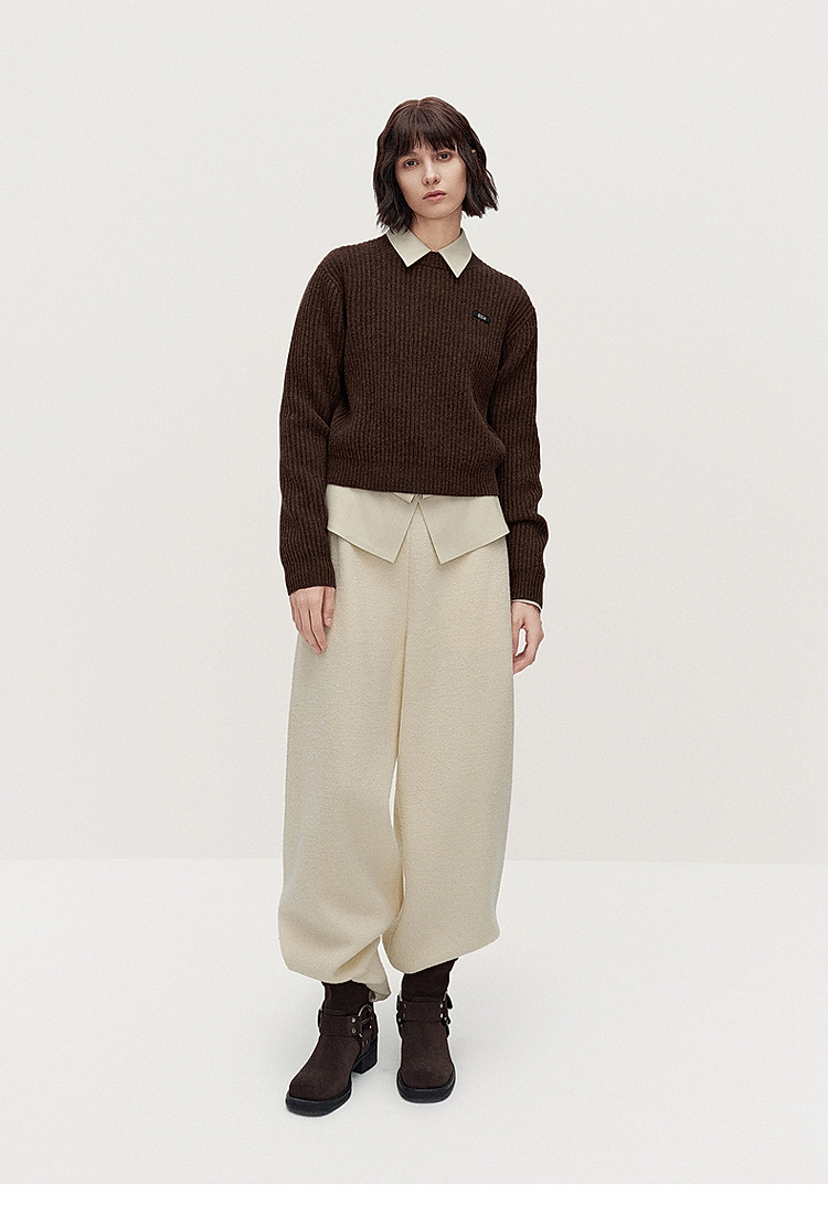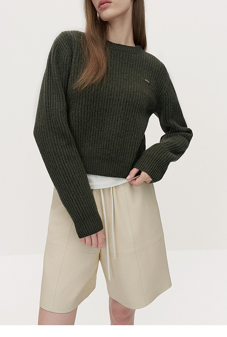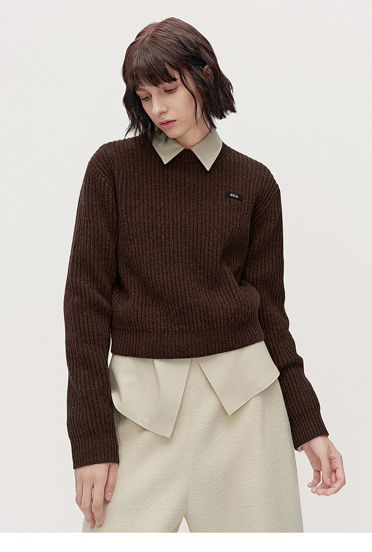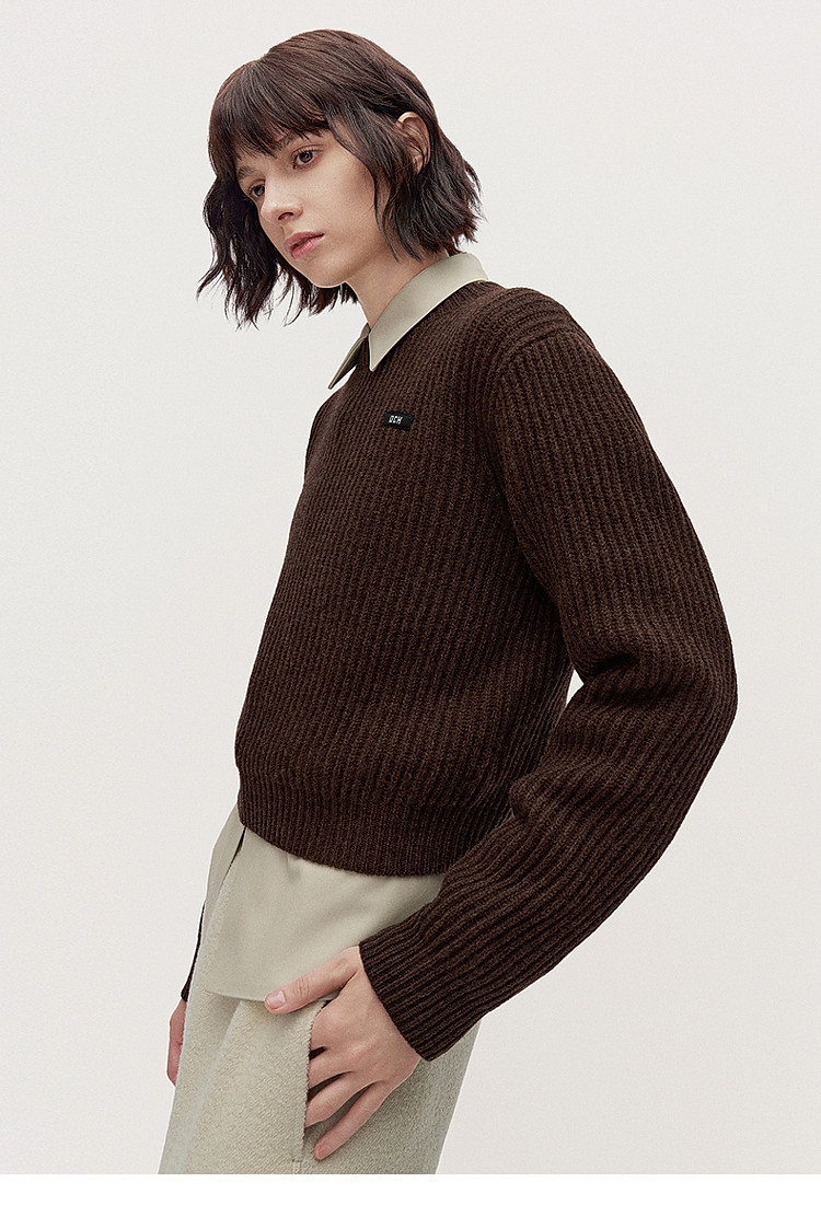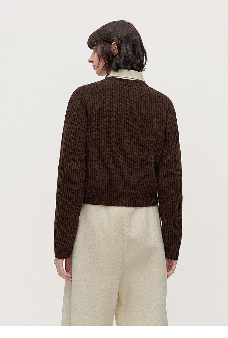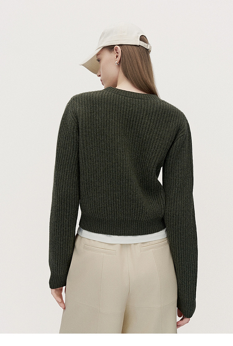 【含绵羊毛】镂空领口纯色长袖针织毛衣女 199249