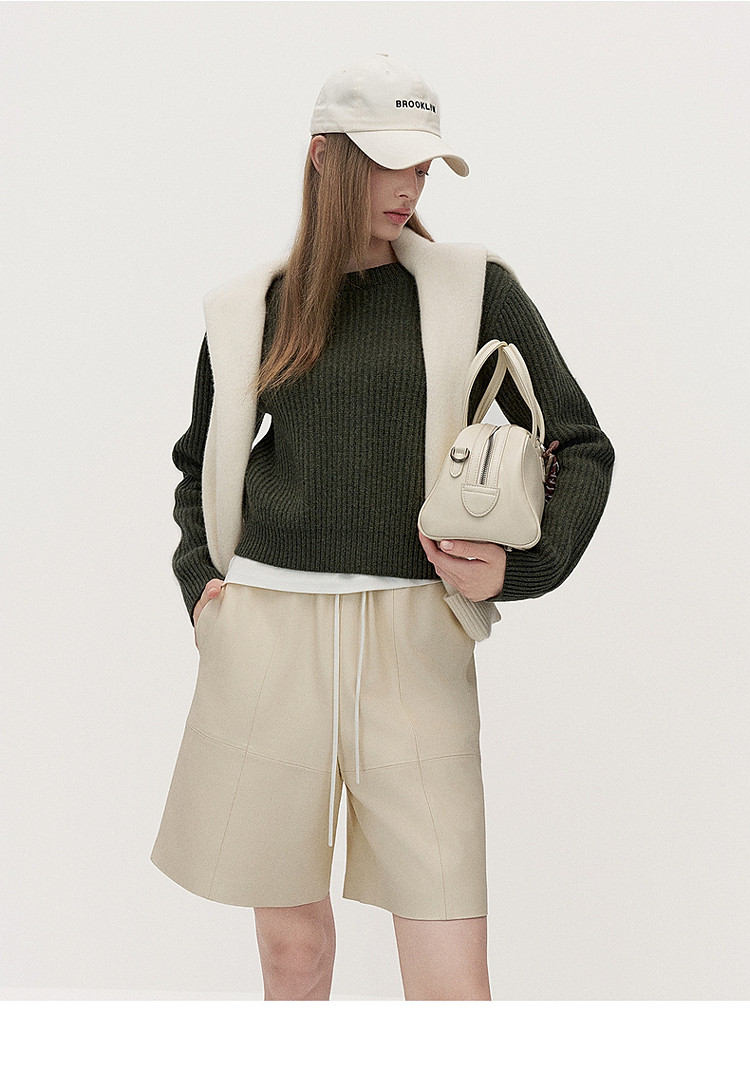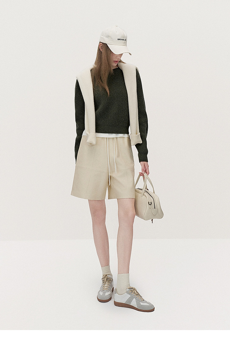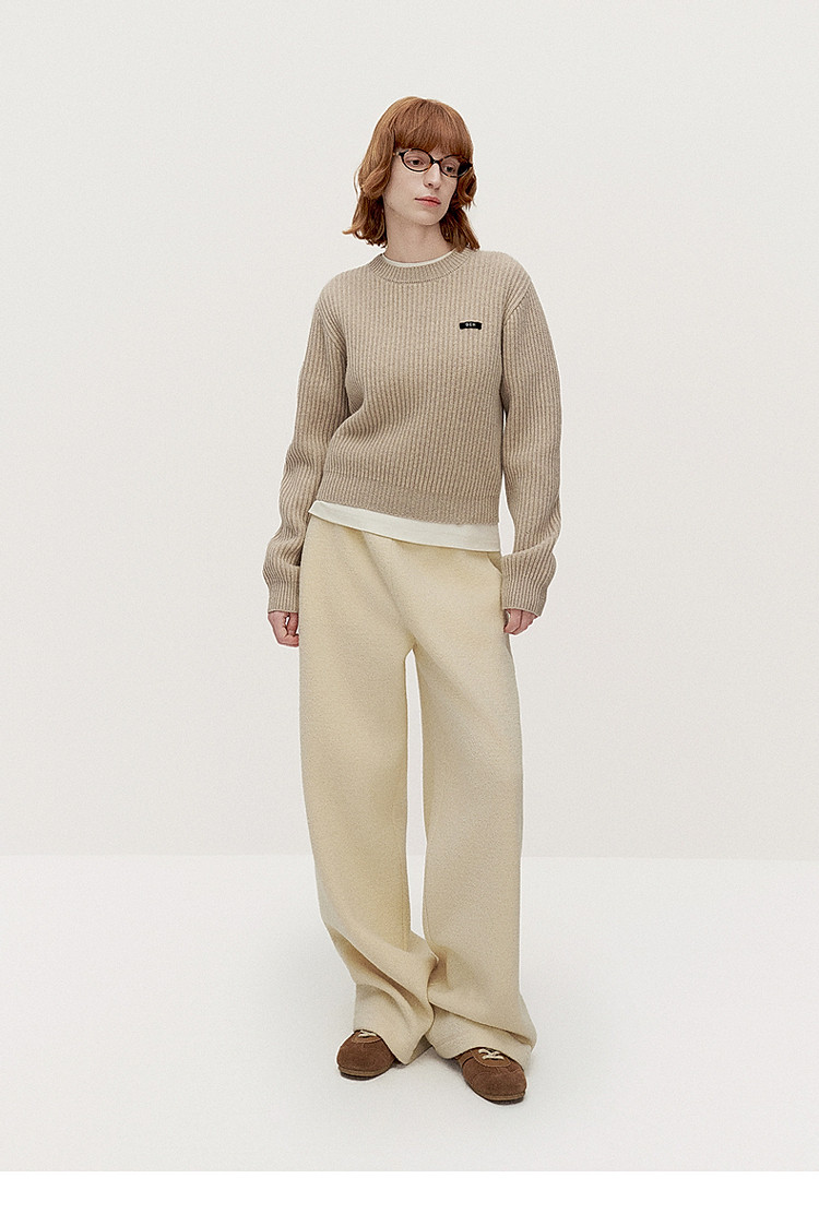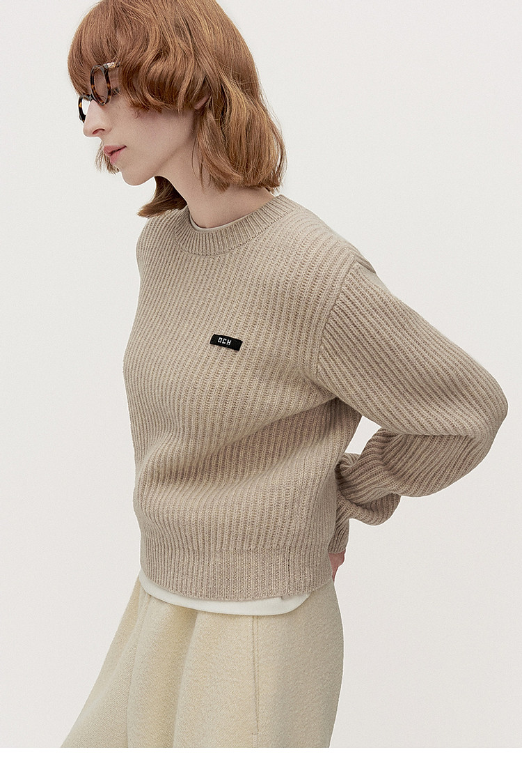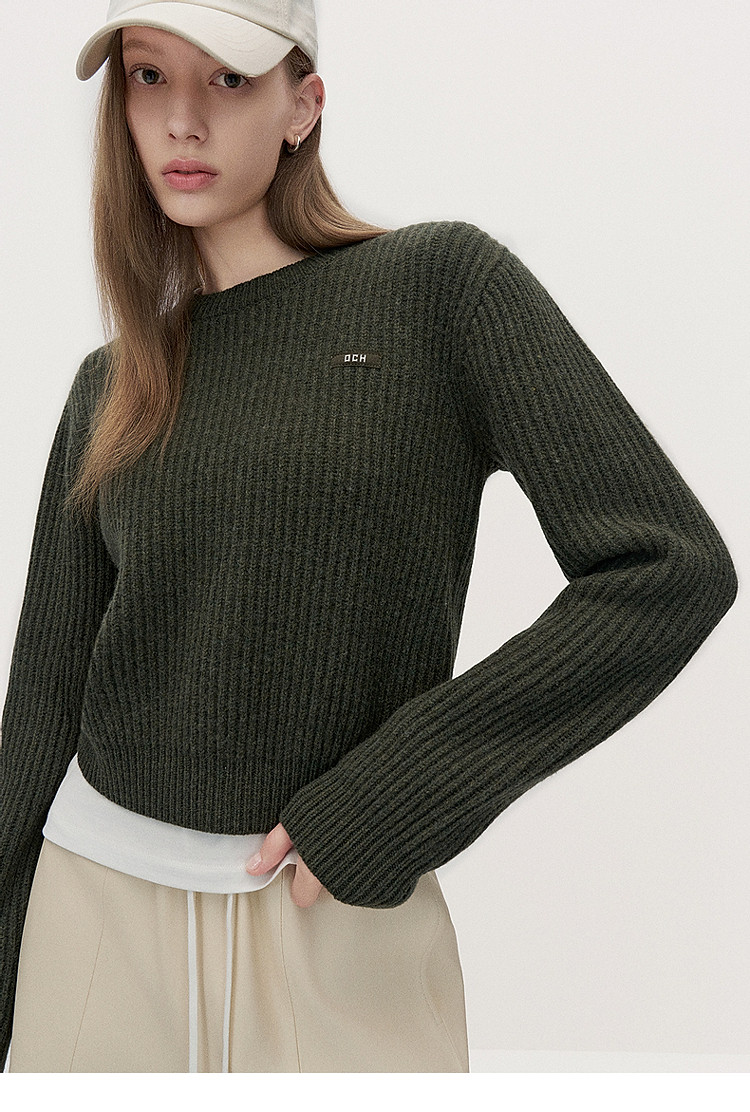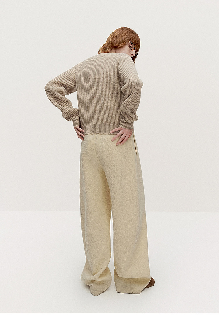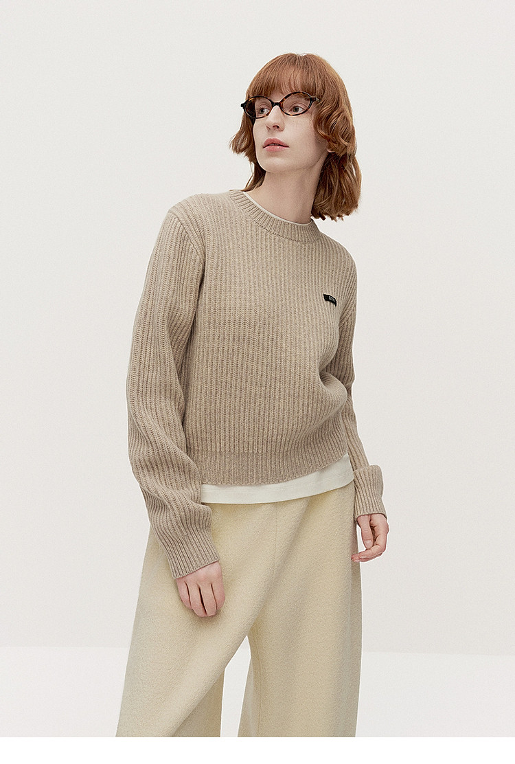 【含绵羊毛】镂空领口纯色长袖针织毛衣女 199249