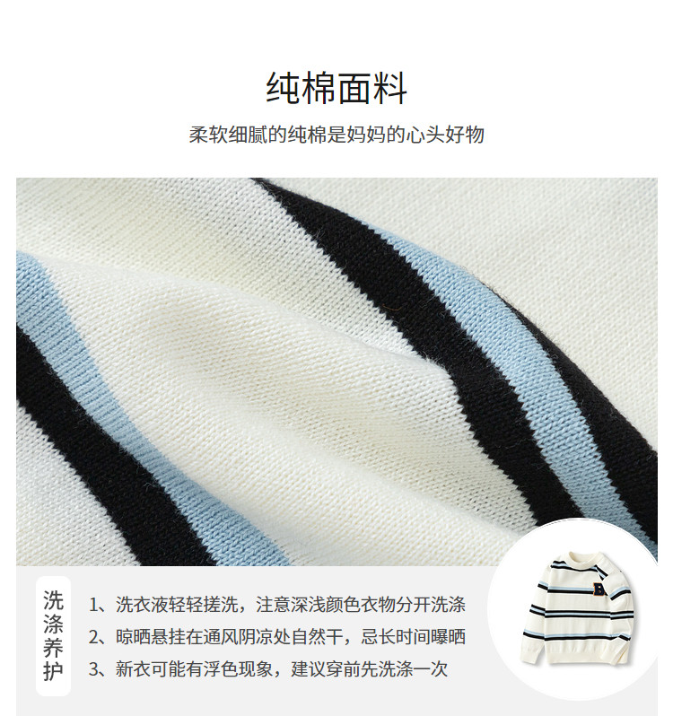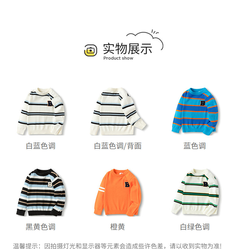 商品名称:纯棉男童长袖t恤儿童上衣小童打底衫宝宝经典条纹套头毛衣春秋装 883333