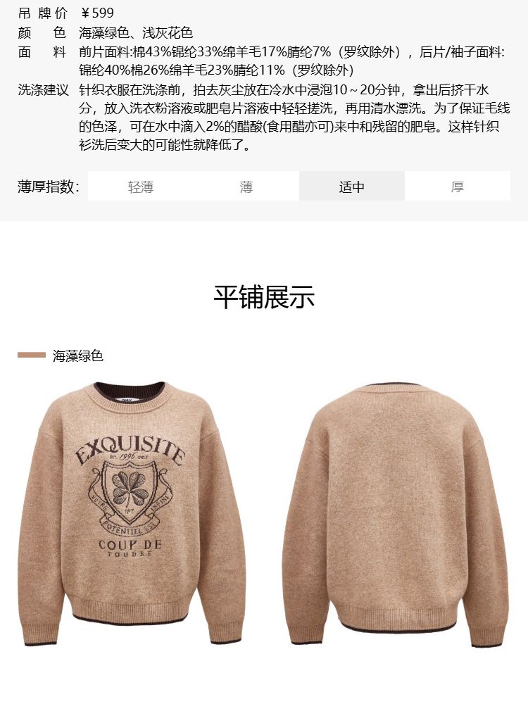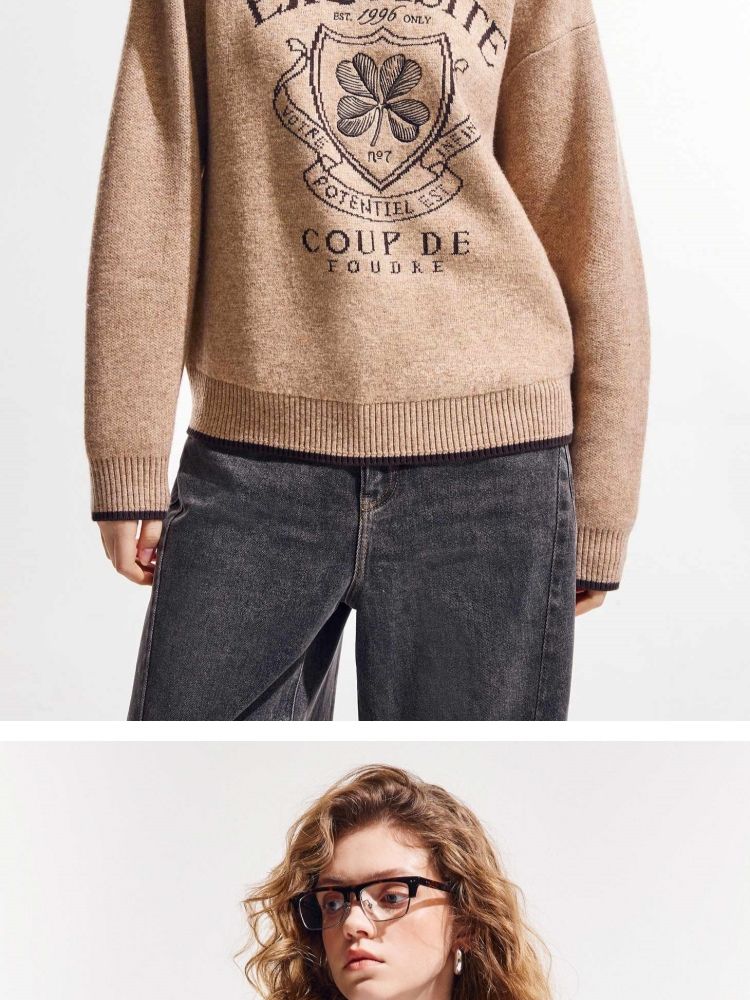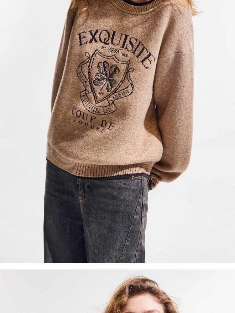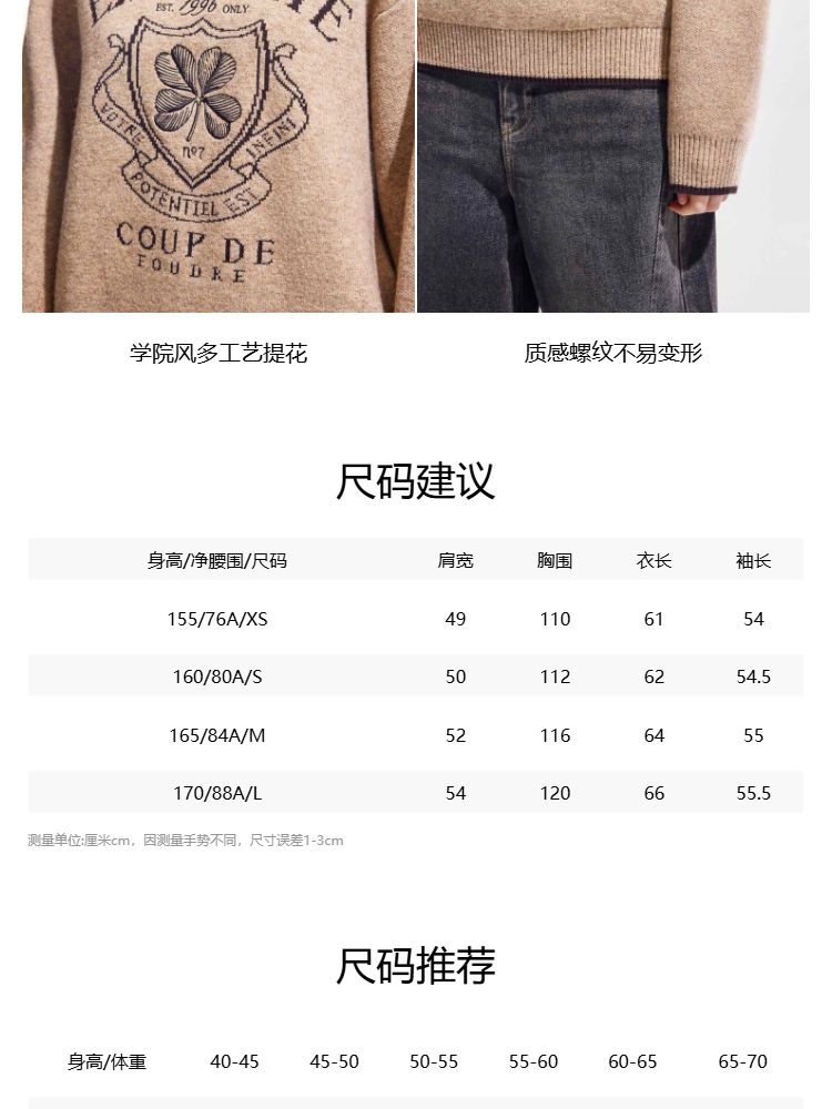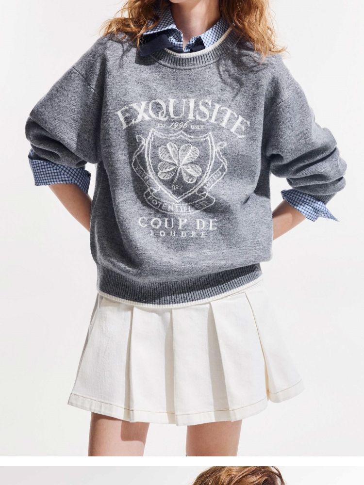 商品名称:【假两件】2025春季学院风假两件圆领宽松提花针织衫女 767450