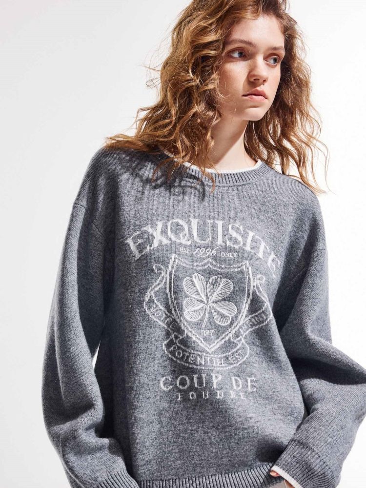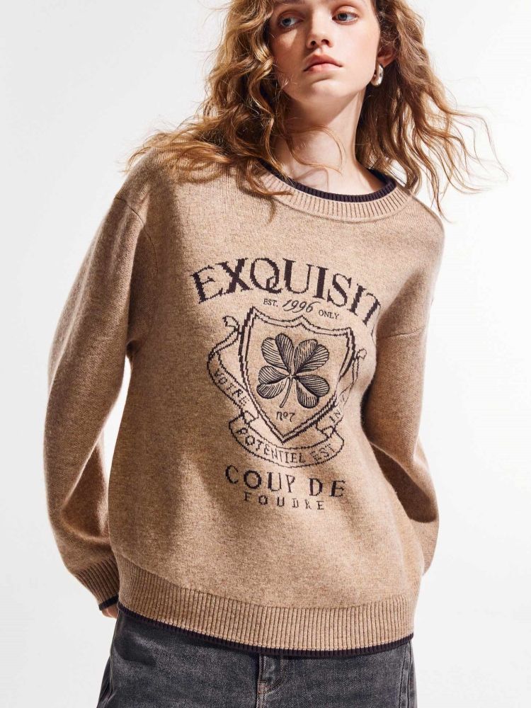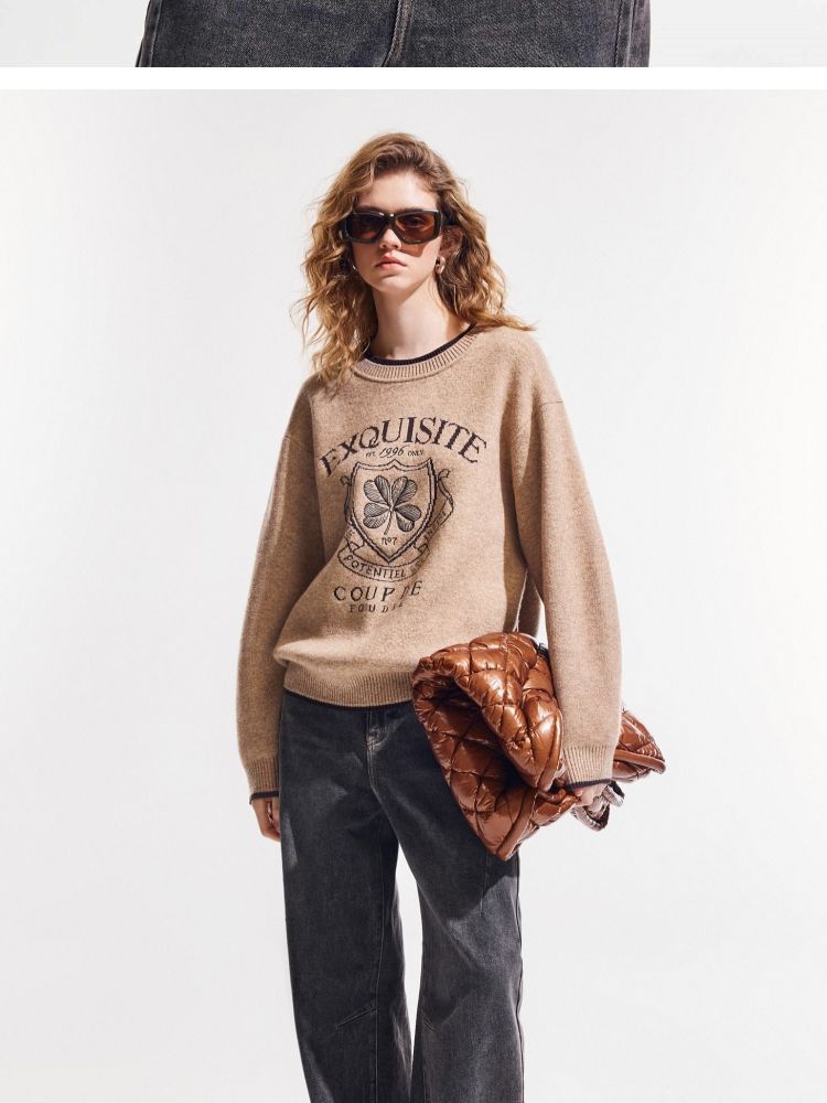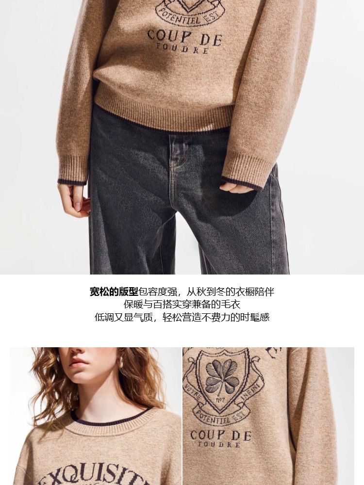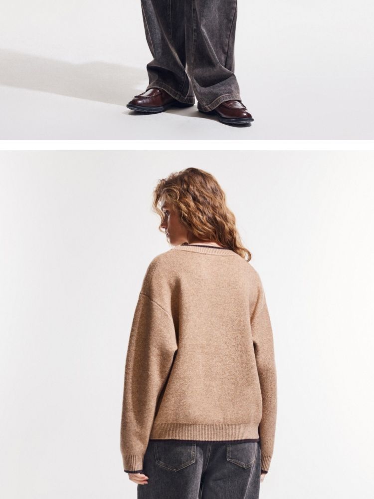 商品名称:【假两件】2025春季学院风假两件圆领宽松提花针织衫女 767450