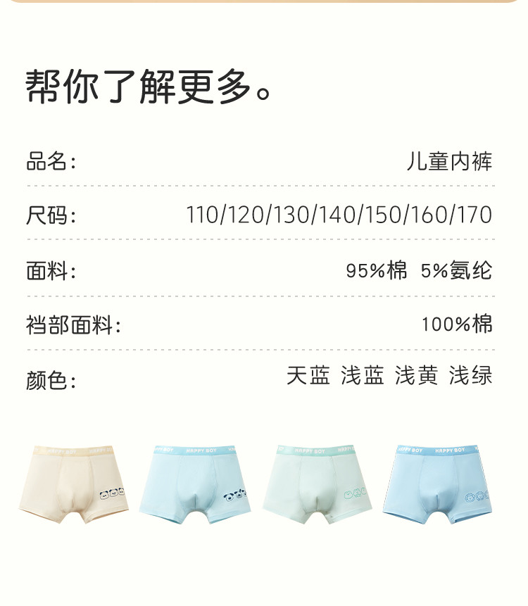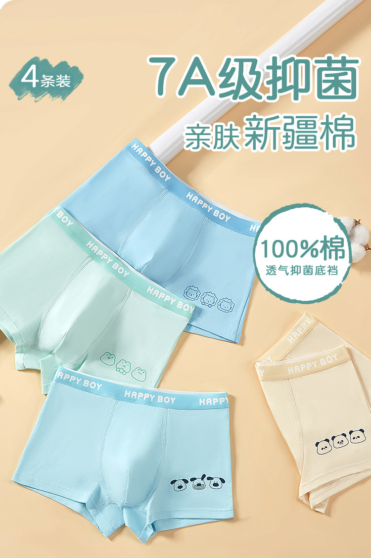 商品名称:【100%纯棉裆】4条装男女童内裤儿童内裤7A级抑菌裤平角裤 797899