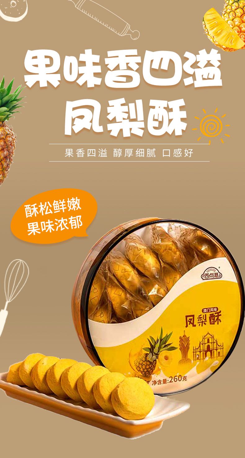 商品名称:西点港澳门手信凤梨酥260克*两盒 澳门特产传统礼盒礼包伴手礼送礼佳品