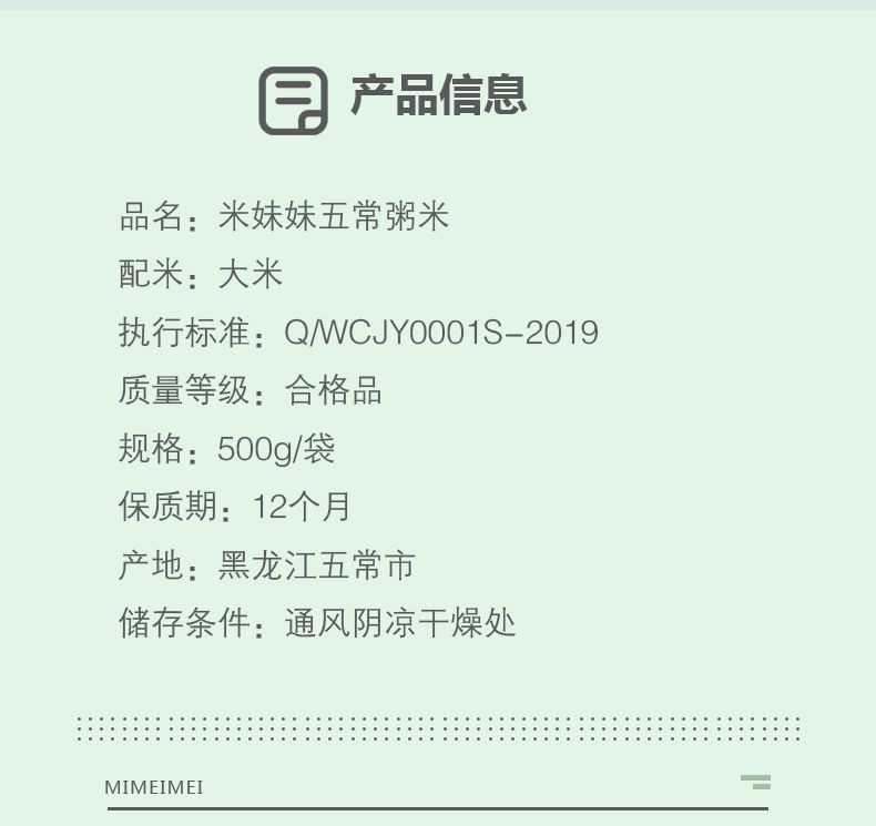 商品名称:米妹妹五常粥米 多规格 东北大米