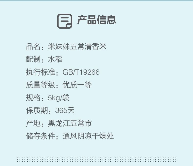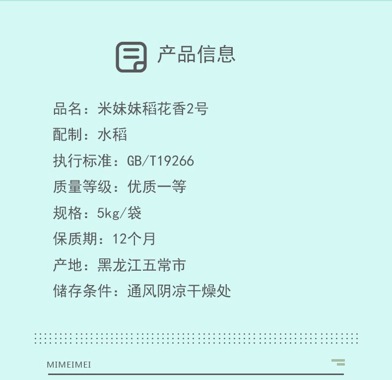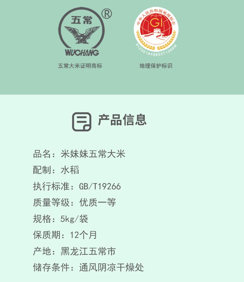 商品名称:米妹妹五常大米5kg 东北大米 稻花香大米 清香大米