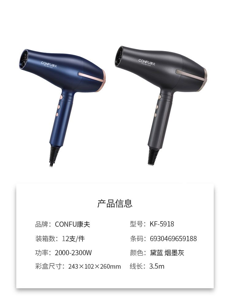 商品名称:康夫新款大功率2300W电吹风机加长线插头家用电吹风筒