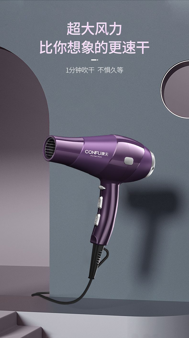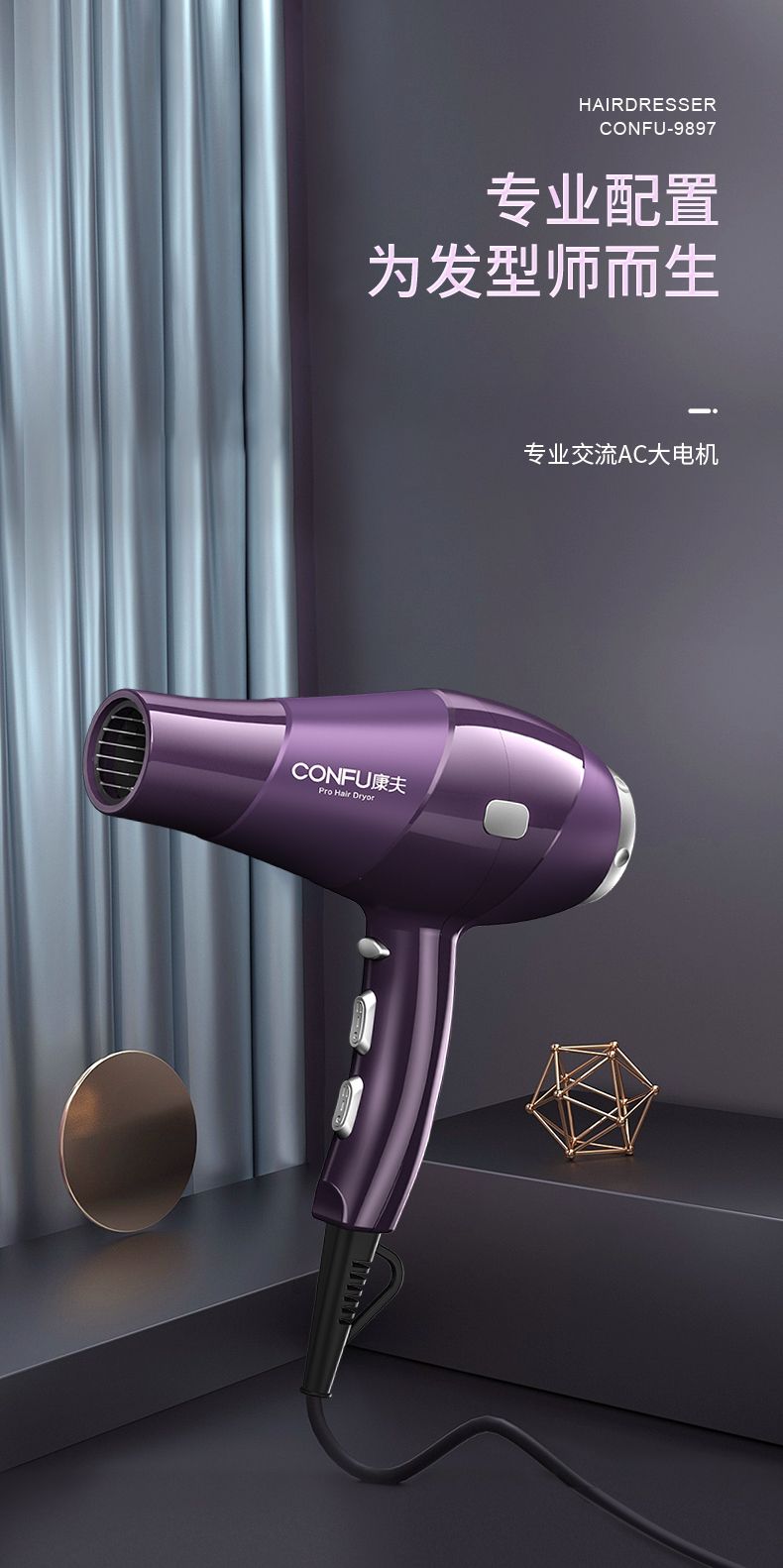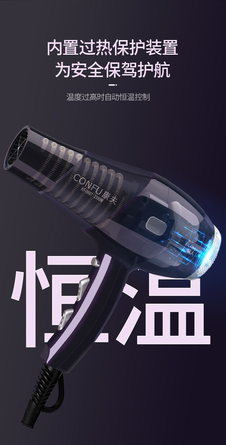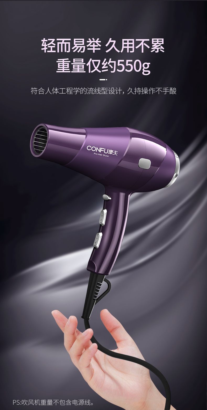 商品名称:CONFU康夫电吹风KF9897负离子恒温 冷热风2档风速,3档风温一键冷热风功能交流电机专业大功率2300W