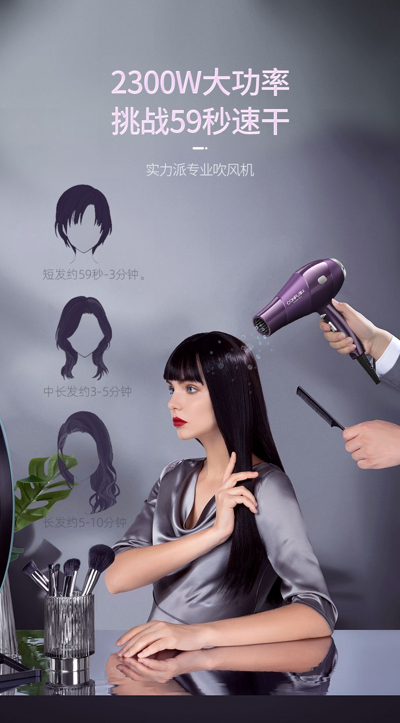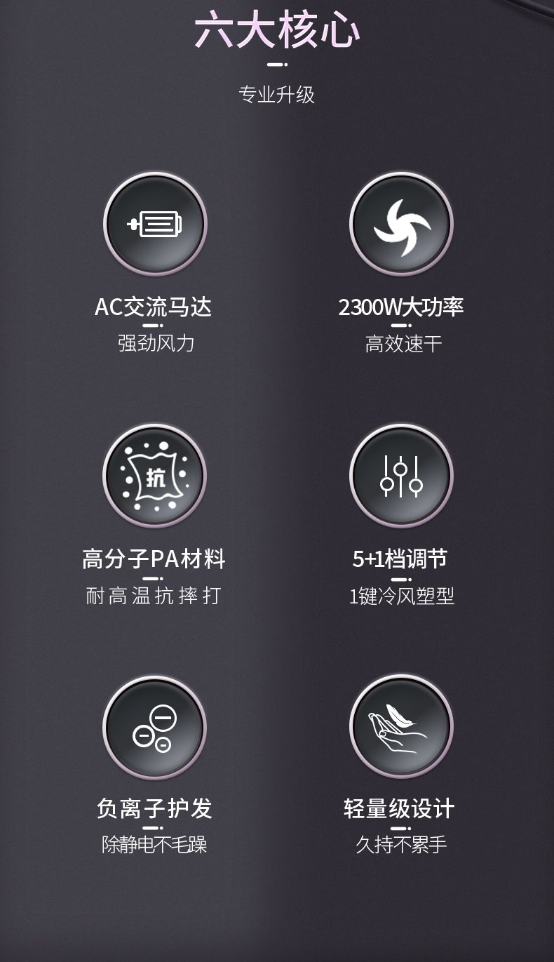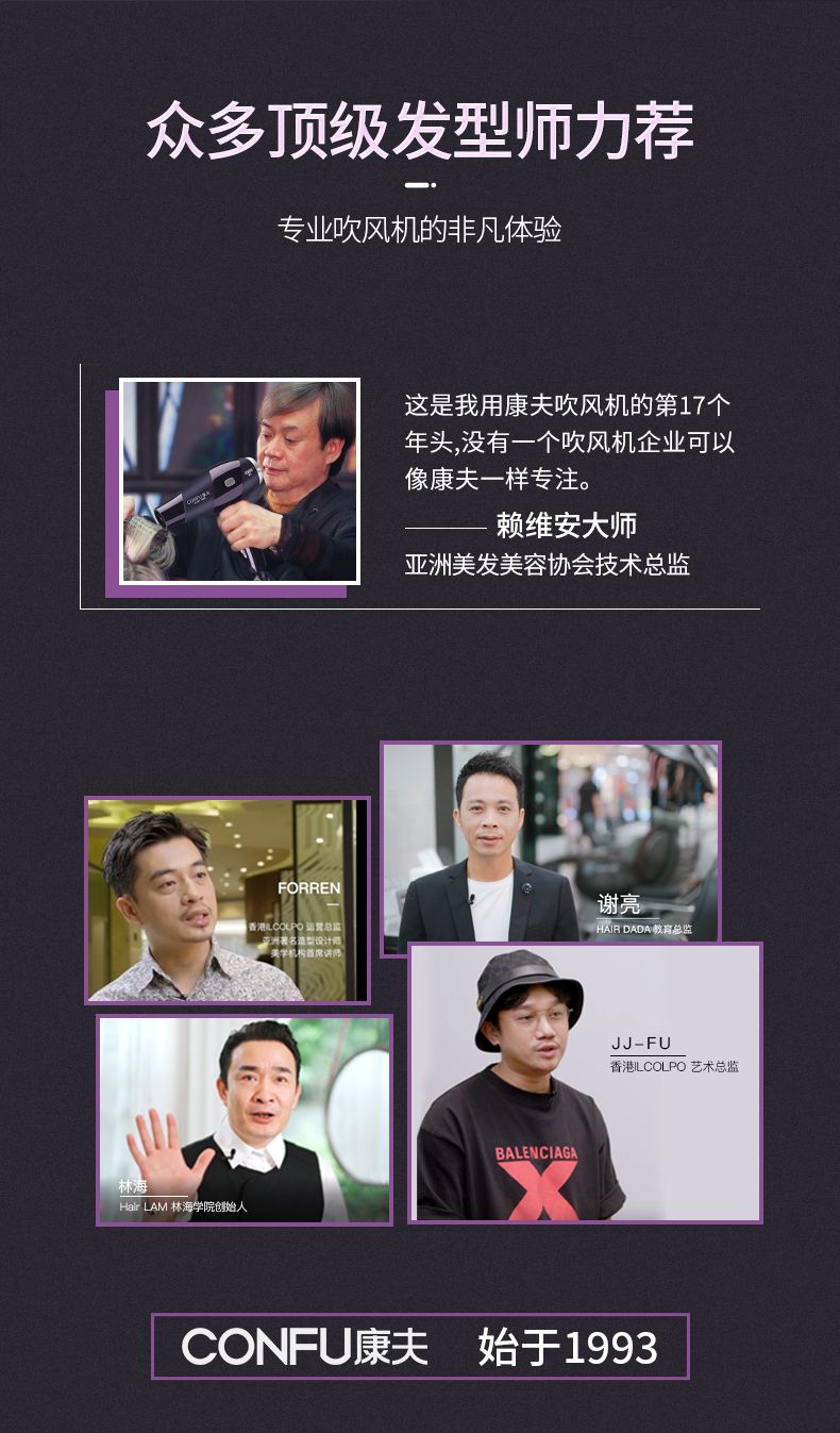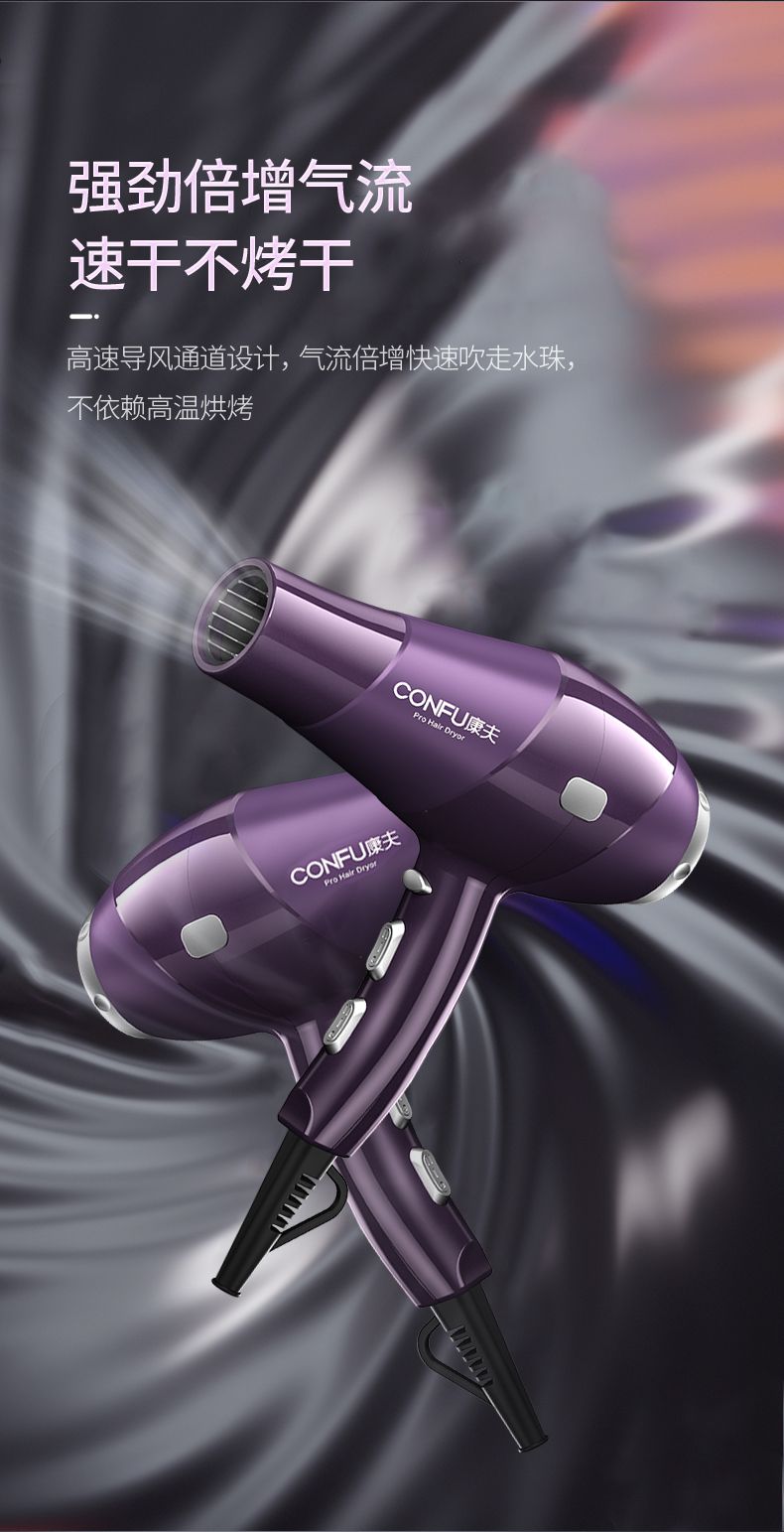 商品名称:CONFU康夫电吹风KF9897负离子恒温 冷热风2档风速,3档风温一键冷热风功能交流电机专业大功率2300W